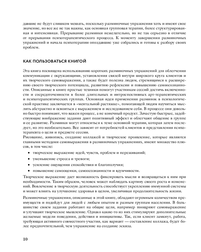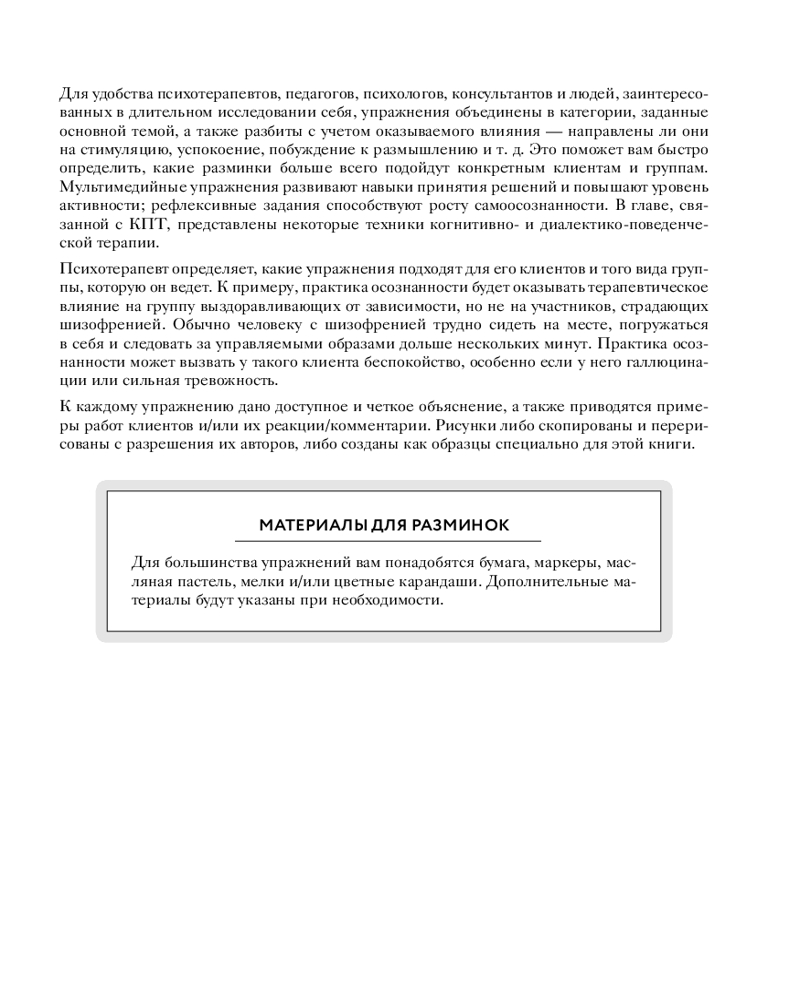 💳 Оплатить за товар можно при получении 🇰🇿 Есть бесплатная доставка по Казахстану от 1 дня 🎁 Копите бонусы с каждой покупки Бывает, что не получается успокоиться после трудного дня, найти 5 минут, чтобы выйти из стрессовой ситуации, войти в ритм работы с психологом, в личной и групповой терапии. Арт-терапевтические упражнения помогут поймать волну и сосредоточиться на себе и своих процессах. Эта книга для практикующих и начинающих психологов, арт-терапевтов и людей, желающих ближе познакомиться с собой. Короткие упражнения-пятиминутки легко ввести в практику терапевтов в начале сессии или групповой терапии, вам понадобятся карандаши, маркеры, бумага. Этого достаточно, чтобы выйти из ощущения неопределенности и погрузиться в самонаблюдение. |