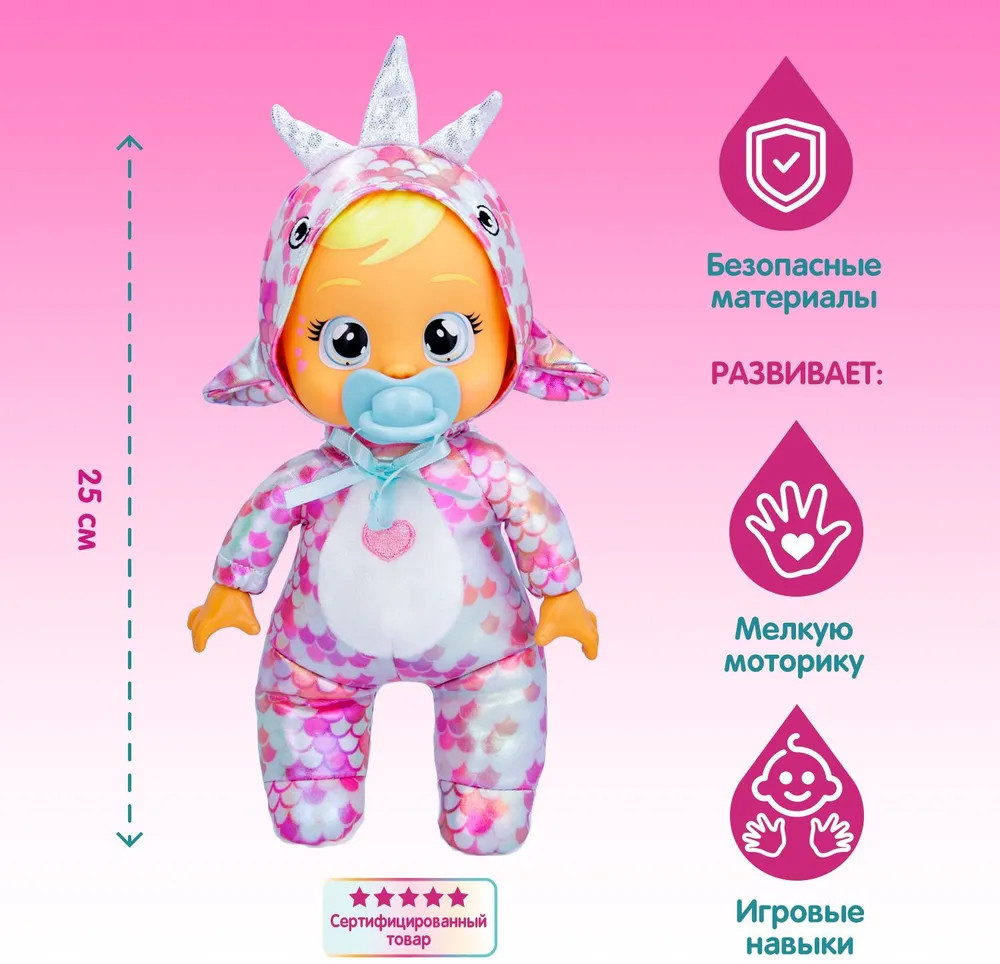 Бренд Crybabies принадлежит испанской компании IMC Toys, которая была основана в 1981 году и входит в десятку лидеров среди европейских производителей игрушек. Он выпускает интерактивных кукол, которые очень похожи на настоящих младенцев. Игрушечные пупсы этой марки отличаются не только милым и оригинальным дизайном, но и уникальными конструктивными особенностями. Куклы Crybabies изготовлены из безопасных материалов и славятся своим превосходным качеством. Они соответствуют всем европейским и...