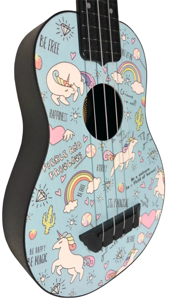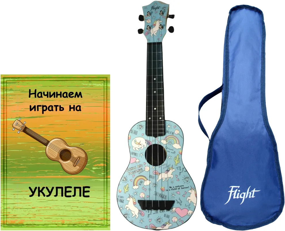 В данный момент этот товар отсутствует в продаже. Возможно, у нас найдется аналогичный или похожий товар здесь. Укулеле Flight серии Travel — Tus-40 Unicorn — эта модель прекрасно подойдет как для обучения музыке, так и в качестве второго инструмента, который можно брать с собой на природу, путешествия, фестивали. Эта укулеле суперпрочная, легкая и самое главное потрясающе звучит! Укулеле FLIGHT TUS 40 UNICORN — точно не предназначена для серых будней! Она исполнена в самых милых пастельных тонах, где на цветочных полянах скачут радужные единороги. Магия укулеле и единорога сливаются здесь воедино, и над вами воссияет радуга, как только вы сделаете свой первый трунь! В комплекте с укулеле поставляется чехол.