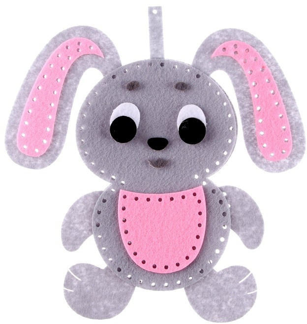 Набор включает в себя безопасную пластиковую иглу, нитки и готовые детали из фетра, при сшивании которых получается игрушка размером 15×15 см. По контуру каждой фетровой фигуры имеются дырочки — это позволит сделать строчки ровными и аккуратными. Задача ребёнка ― выложить из деталей целостный образ животного и с помощью иголки и нитки последовательно сшить между собой все элементы. Рассмотрите вместе с ребёнком все мягкие детали и обсудите, к какой части тела относится каждая из них. Обращайте внимание на аналогичные части тела самого малыша.