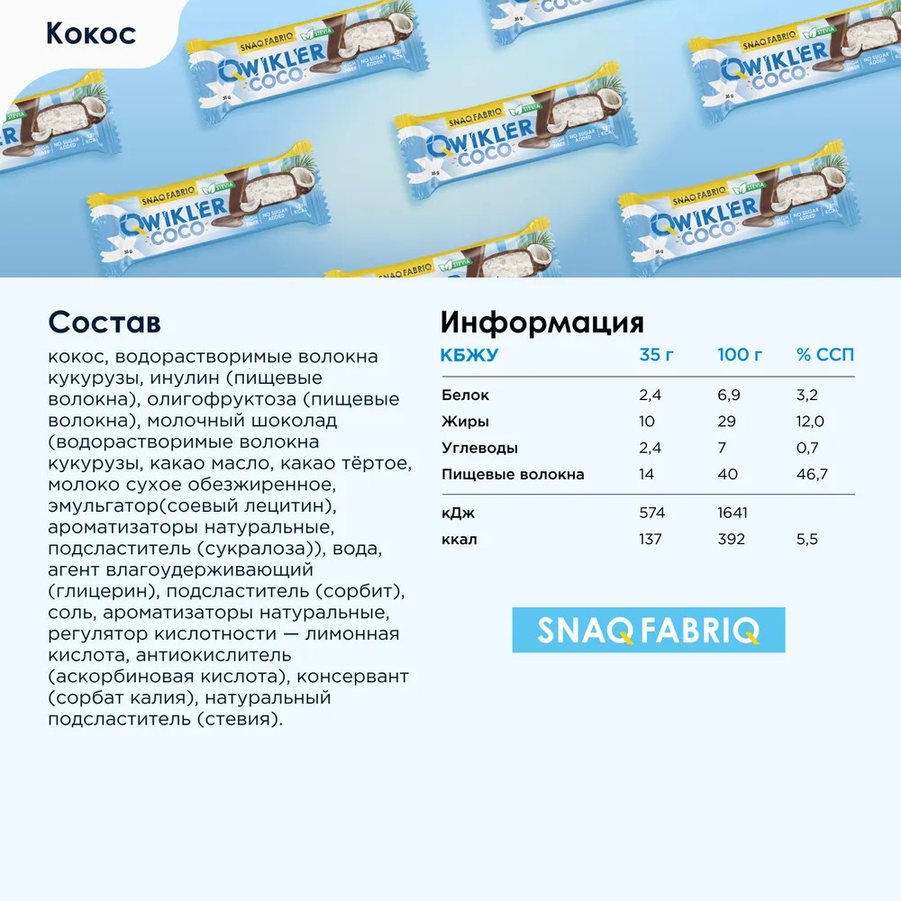Snaq Fabriq Набор батончиков глазированных «Кокосовый»