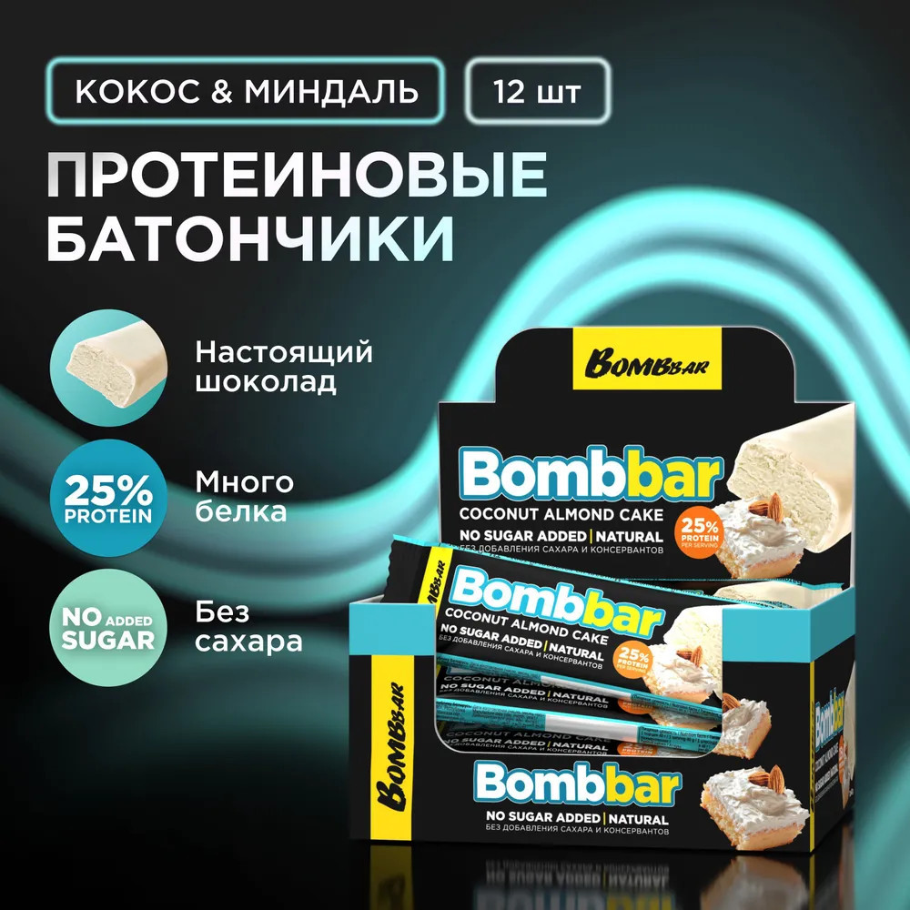 Bombbar Набор батончиков протеиновых «Миндально-кокосовый торт»