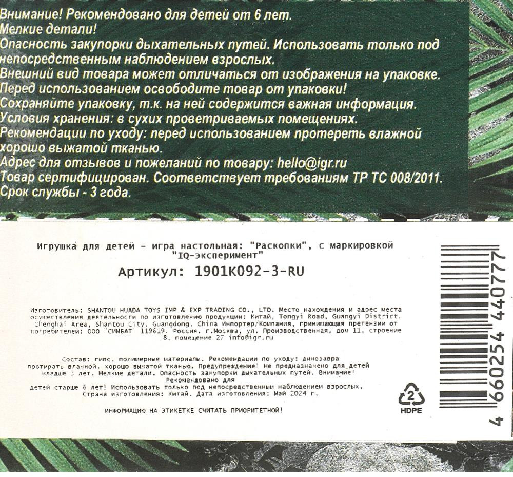 💳 Оплатить за товар можно при получении 🇰🇿 Есть бесплатная доставка по Казахстану от 1 дня 🎁 Копите бонусы с каждой покупки Серия: Настоящие раскопки Игровой набор «Настоящие раскопки» ТМ «IQ эксперимент» непременно понравится юным палеонтологам: |