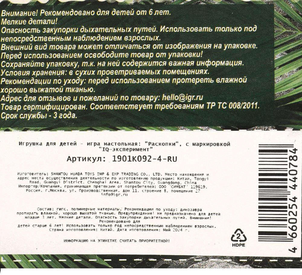 💳 Оплатить за товар можно при получении 🇰🇿 Есть бесплатная доставка по Казахстану от 1 дня 🎁 Копите бонусы с каждой покупки Серия: Настоящие раскопки Игровой набор «Настоящие раскопки» ТМ «IQ эксперимент» непременно понравится юным палеонтологам: |