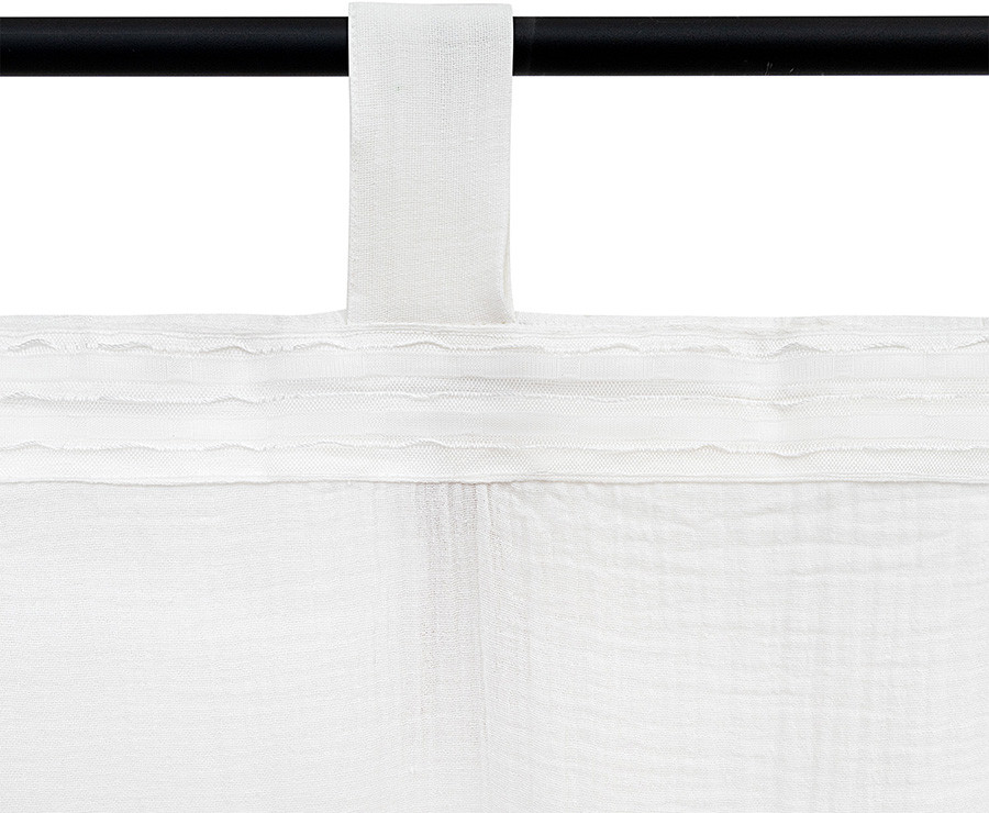 • по верхнему краю шторы предусмотрена лента с петельками для крепления на крючки и текстильные петли, которые позволяют легко разместить ее на карнизе без использования дополнительного крепежа.