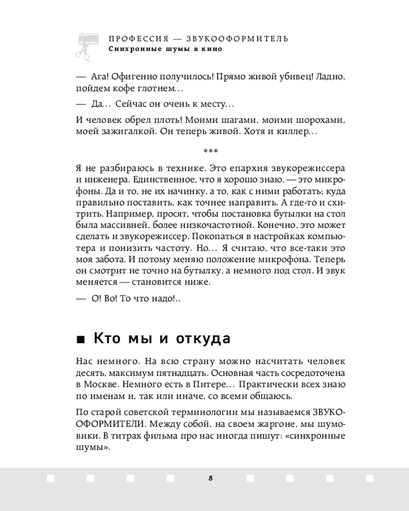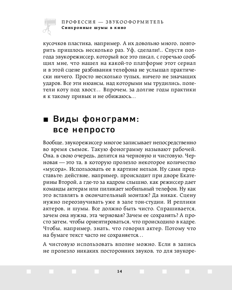 💳 Оплатить за товар можно при получении 🇰🇿 Есть бесплатная доставка по Казахстану от 1 дня 🎁 Копите бонусы с каждой покупки Серия: Мастерская кино. Секреты киноиндустрии Топот копыт, скрип двери, шум моря... Задумывались ли вы, откуда появляются эти звуковые эффекты в кино? А кто их создает? В этой увлекательной книге Тимофей Вольский, потомственный шумовик Тонстудии на «Мосфильме», приоткрывает завесу над одной из самых загадочных и творческих профессий в мире кино — звукооформителем. Эта книга станет настольным пособием как для начинающих звукооформителей, так и для опытных профессионалов. Откройте для себя магию звука и узнайте, как сделать ваш проект по-настоящему живым! |