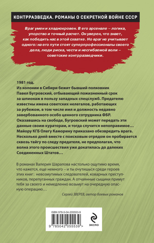 Сибирский беглецВ данный момент этот товар отсутствует в продаже. Возможно, у нас найдется аналогичный или похожий товар здесь. Серия: Контрразведка. Романы о секретной войне СССР 1981 год. Из колонии в Сибири бежит бывший полковник Павел Бугровский, отбывающий пожизненный срок за шпионаж в пользу западных спецслужб. Предателю известны имена советских нелегалов, работающих за рубежом, в том числе — имя и должность недавно завербованного особо ценного сотрудника ФБР. Оказавшись на свободе, Бугровский может передать эти данные своим кураторам, и тогда случится непоправимое... Майору КГБ Олегу Каморину приказано обезвредить врага. Несколько дней вместе с поисковым отрядом он пробирается сквозь тайгу по следу предателя, не предполагая, что волна этого происшествия уже докатилась до далеких Соединенных Штатов... |