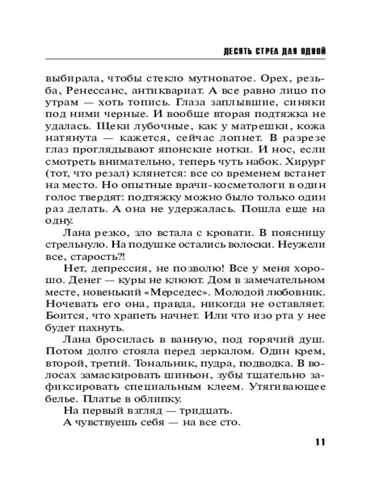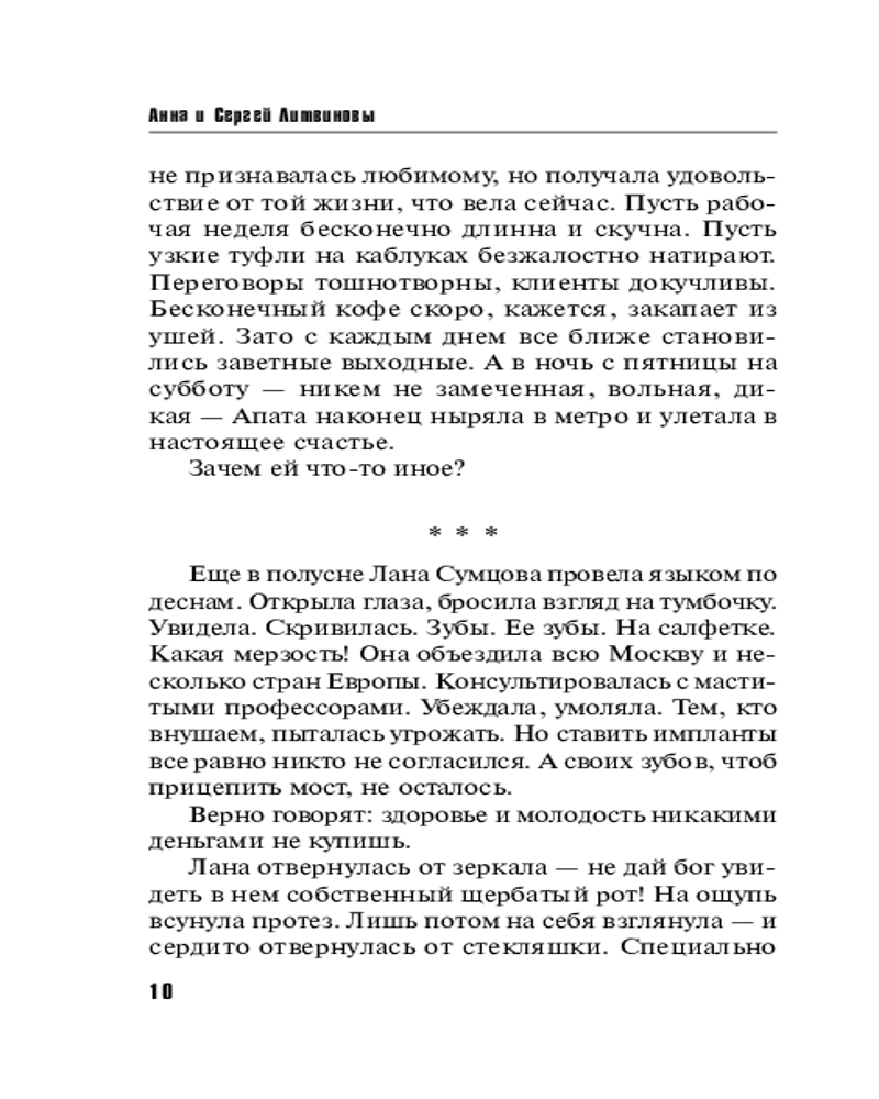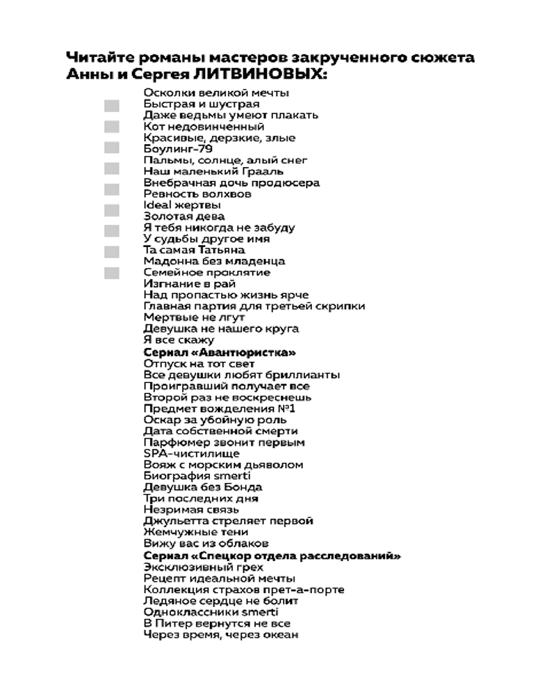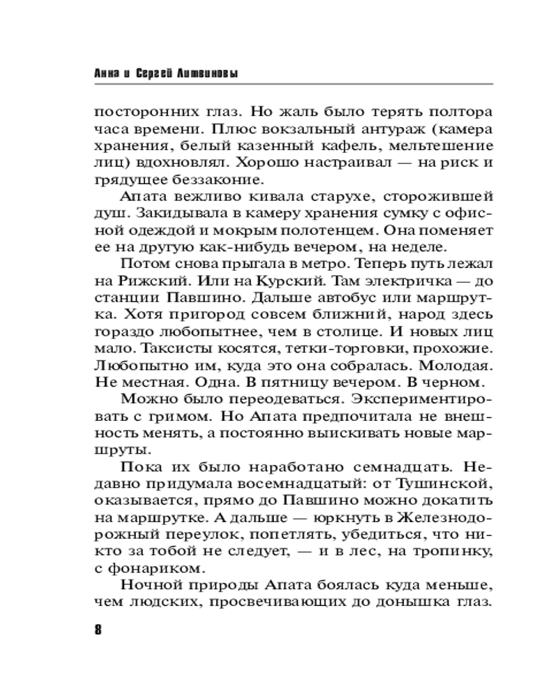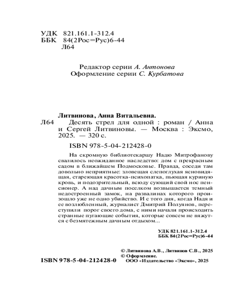 Серия: Знаменитый тандем российского детектива. Новые страницы (обложка) На скромную библиотекаршу Надю Митрофанову свалилось неожиданное наследство: дом с прекрасным садом в ближайшем Подмосковье. Правда, соседи там довольно неприятные: зловещая слепоглухая ясновидящая, стареющая красотка-психопатка, пьющая куриную кровь, и подозрительный, всюду сующий свой нос пенсионер. А над дачным поселком возвышается темный недостроенный замок, на развалинах которого произошло уже не одно убийство. И с того дня, когда Надя и ее возлюбленный, журналист Дмитрий Полуянов, переступили порог своего дома, с ними начали происходить странные пугающие события, которые совсем не вяжутся с безмятежным дачным отдыхом... |
