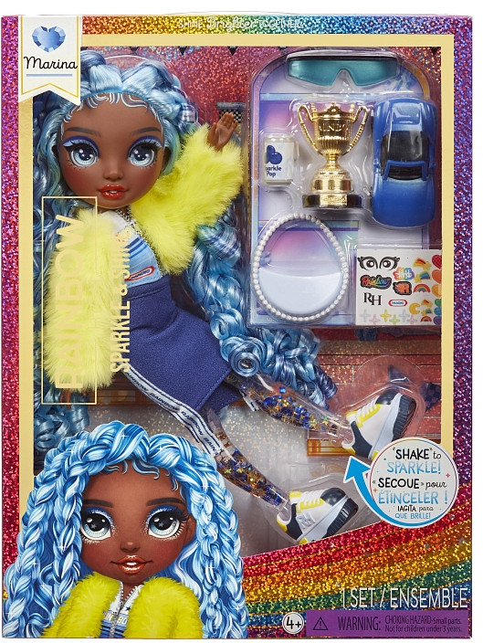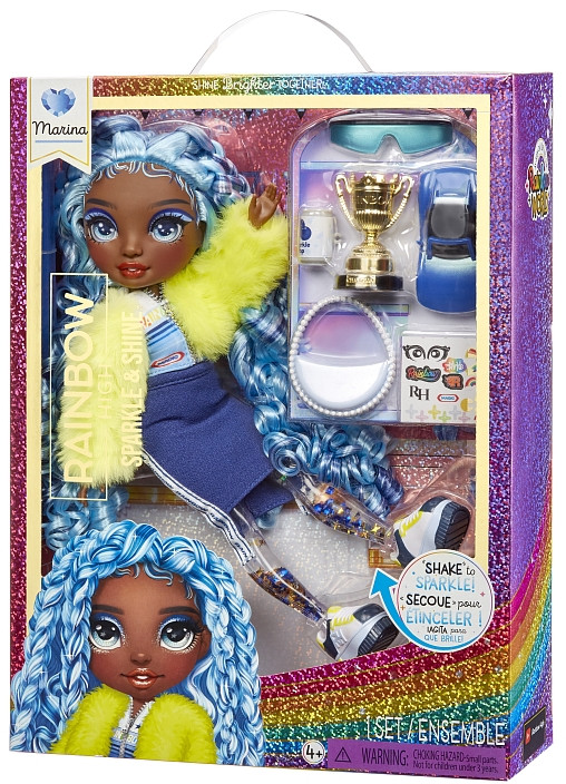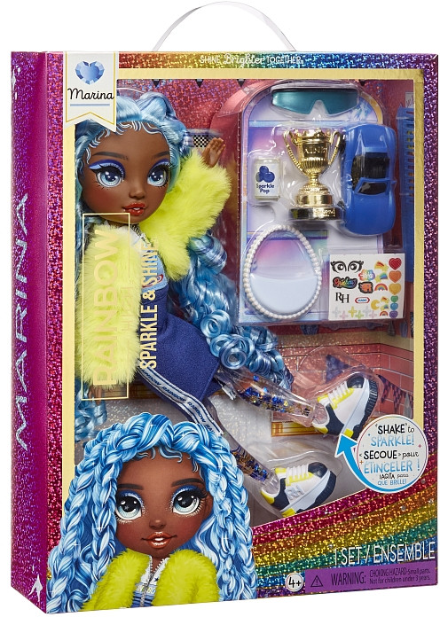 Познакомьтесь с Мариной! Она спокойная и рассудительная, обожает голубой цвет и всегда берет с собой любимую модную сумочку. Воплоти свои блестящие идеи для игр вместе с Розеттой, Клементиной, Мариной и Виолой!Марина Sparkle & Shine — это кукла высотой 27 см с длинными густыми прошитыми волосами и длинными ресницами, подвижными ручками и ножками (7 точек артикуляции).