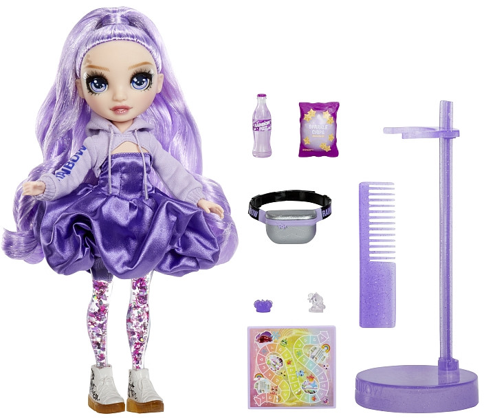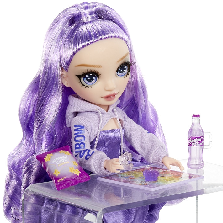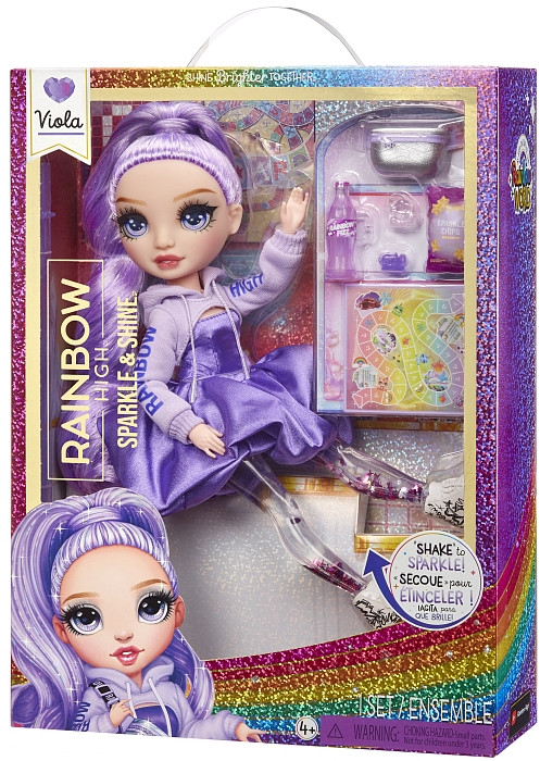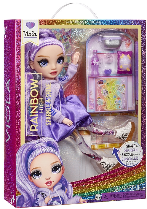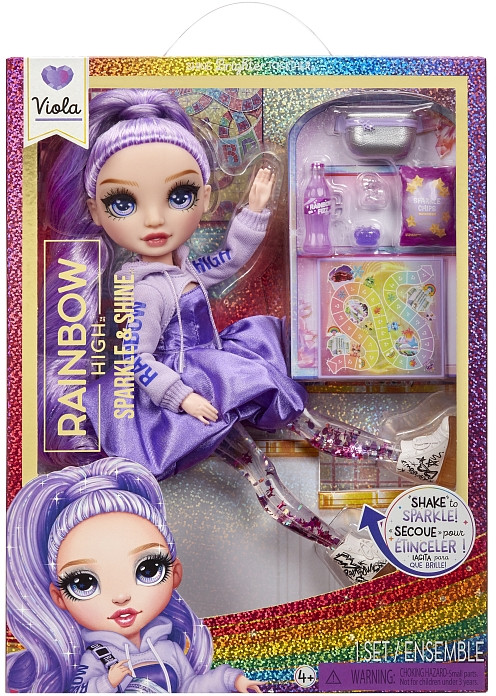 Познакомьтесь с Виолой! Она мечтательная и творческая, обожает фиолетовый цвет и всегда берет с собой любимую спортивную сумочку. Воплоти свои блестящие идеи для игр вместе с Розеттой, Клементиной, Мариной и Виолой! Виола Sparkle & Shine — это кукла высотой 27 см с длинными густыми прошитыми волосами и длинными ресницами, подвижными ручками и ножками (7 точек артикуляции).