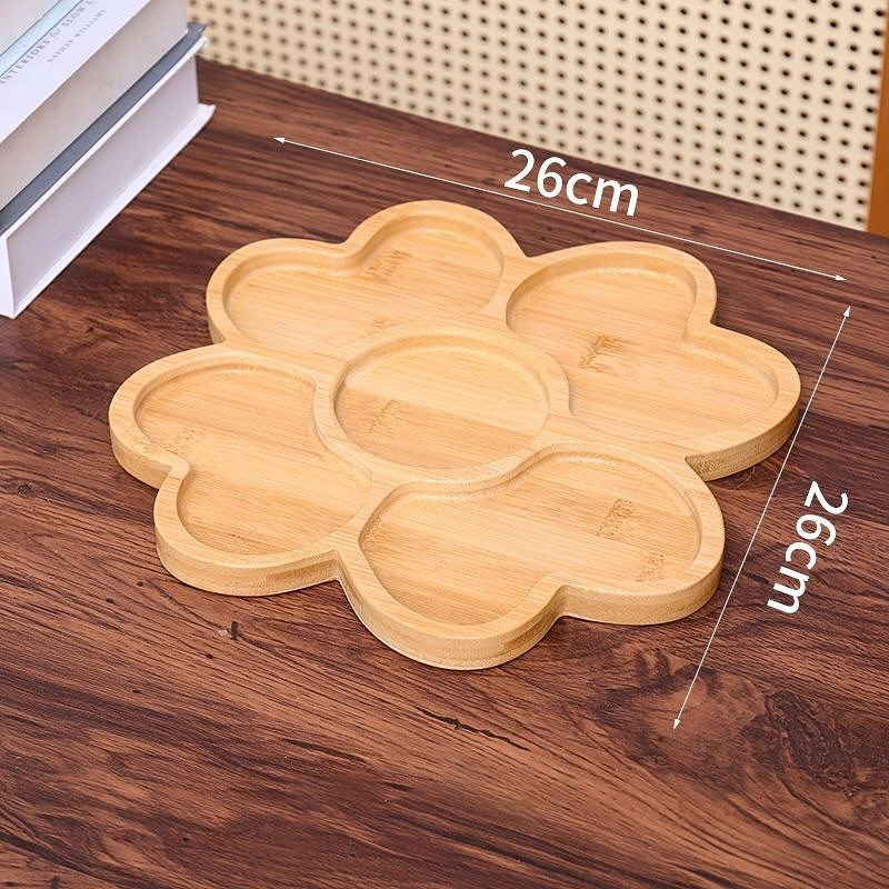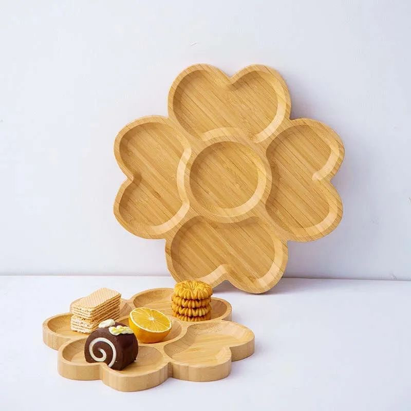 Декоративная посуда — незаменимый атрибут современной кухни. Украсить любой стол поможет круглая менажница из бамбука. Она имеет достаточно крупный диаметр — 26 см, и 5 ячеек, в которое можно поместить соусник). Посуда из бамбука отличается особенной прочностью, так же она достаточно легкая, изделия можно брать с собой в длительные пешие прогулки и путешествия. Бамбук по праву причисляют к экологически чистому сырью, кухонная утварь из него совершенно не навредит природе. Деревянная посуда выглядит стильно и современно.