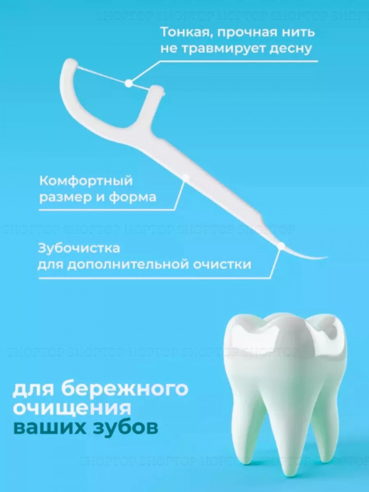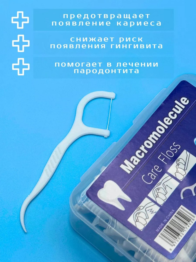 Удобное и эффективное средство для гигиены полости рта! Зубочистка имеет две рабочие поверхности: дужку с нитью, а также острый изогнутый кончик, который можно использовать как обычную зубочистку.