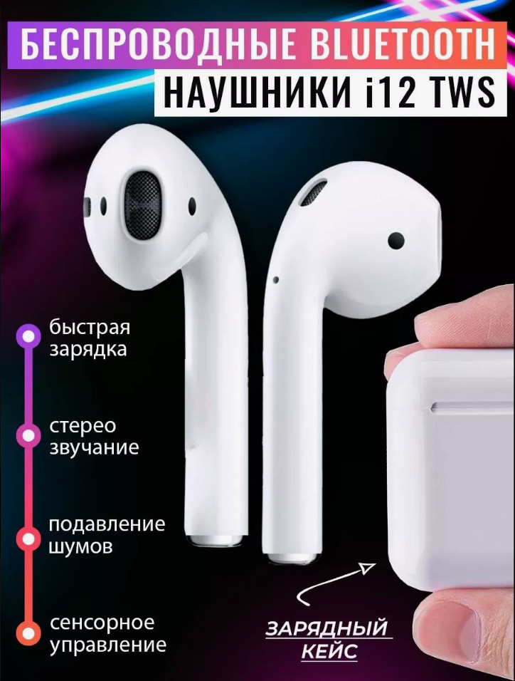 Беспроводные наушники TWS i12 обладают отличным звучанием и стильным компактным дизайном. Для полного заряда требуется всего 60 минут. Эти наушники позволяют принимать и отклонять входящие вызовы, регулировать громкость музыки и переключать треки с помощью сенсорных элементов управления. Они поставляются в компактном зарядном кейсе, который одновременно служит портативным зарядным устройством.
