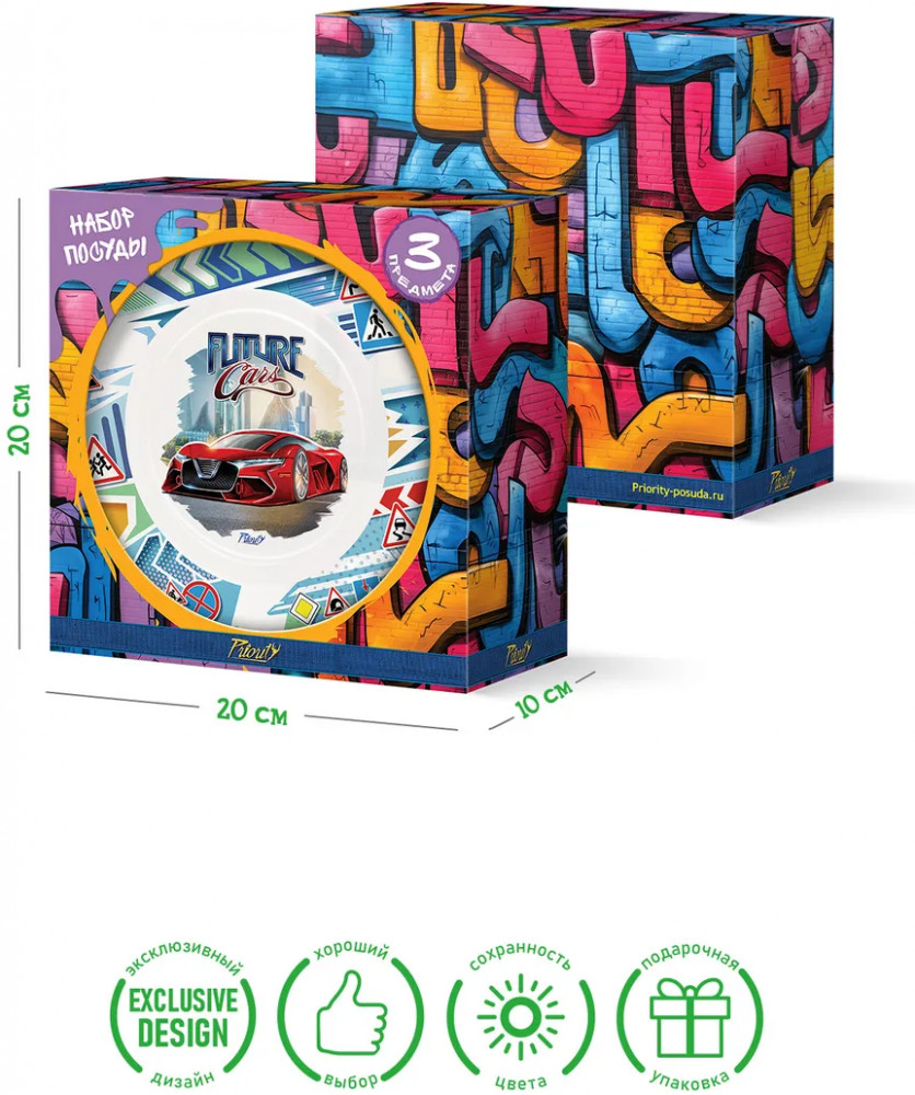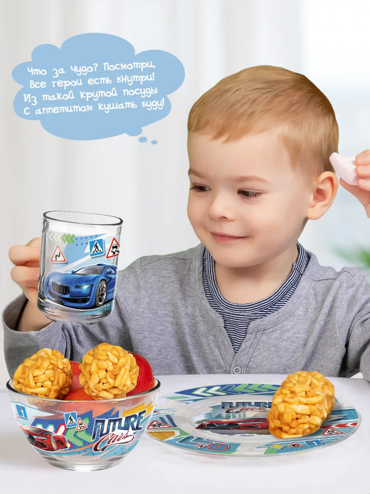 PrioritY Набор детской посуды «Future cars. Автомобили будущего»В данный момент этот товар отсутствует в продаже. Возможно, у нас найдется аналогичный или похожий товар здесь. Представляем уникальный детский набор посуды, который не оставит равнодушными ни детей, ни их родителей. С комплектом посуды из трех предметов: тарелка (диаметр 19,6 см), салатник или суповая тарелка (диаметр 13 см) и кружка (200 мл) — каждый прием пищи станет приятным и веселым событием для маленьких гурманов. Кроме того, оригинальный лицензионный рисунок добавит неповторимости и стиля вашему столу. Детский столовый сервиз с любимыми героями мультфильмов — идеальный выбор для семейных обедов или праздничных мероприятий, ведь он отличается необычной красотой и гармоничным сочетанием форм и цветов. Кроме того, набор из трех предметов — функциональный аксессуар для кормления малышей. Глубокая тарелка для первого блюда, мелкая для второго и легкая чашка для чая, компота, морса, воды, молока позволят ребенку комфортно и с аппетитом есть супы и другие блюда, с любовью приготовленные мамой, папой, бабушкой и дедушкой. Еда сразу становится вкуснее, а завтрак, обед и ужин мгновенно исчезают с тарелок! |