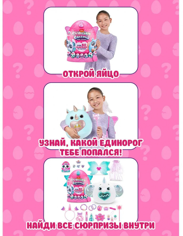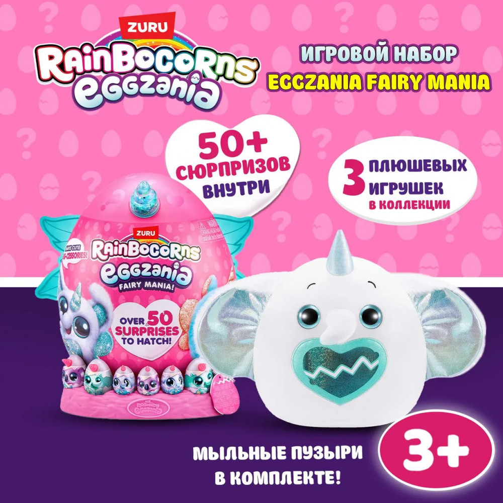 Игровой набор Эггзания Fairy Mania от Зуру — невероятное приключение в мире магии и волшебства! Распаковывайте яйца и наслаждайтесь более чем 50 сюрпризами в каждом из них, собирая коллекцию трех удивительных плюшевых игрушек — Фей Эггзании. Превратитесь в фею, соответствуя вашему Рейнбокорну, благодаря очаровательным крыльям, роскошным лентами для волос, браслетами из бисера, повязками и прочими аксессуарами, которые добавят волшебства в вашу жизнь. Погрузитесь в мир фантазий и бесконечных возможностей — какая фея Эггзания станет вашей игрушкой для девочек в этом волшебном путешествии?