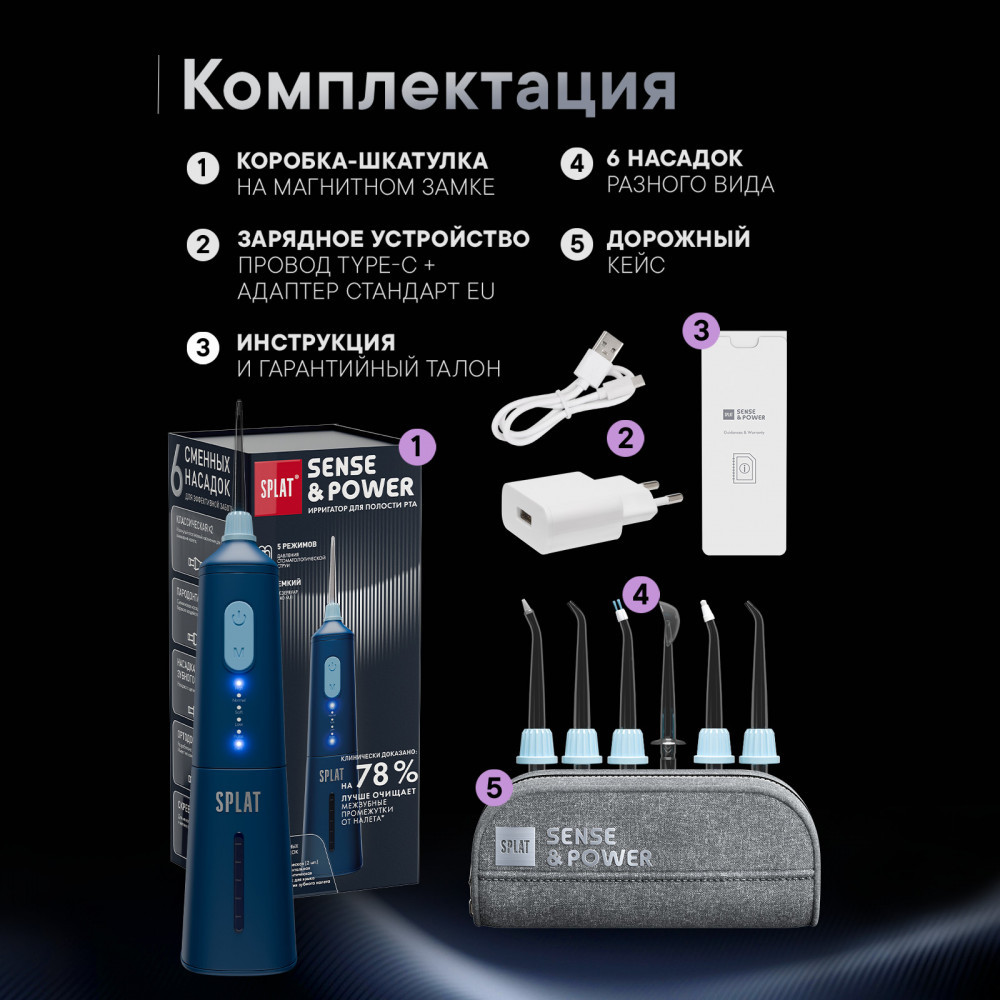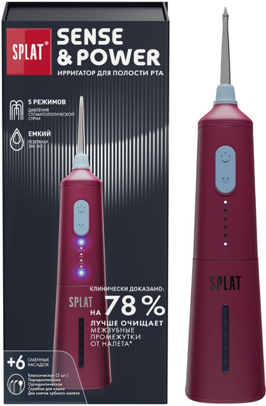 | Splat Портативный электрический ирригатор для полости рта со сменными насадками «Sense&Power Н300»+1553 (бонуса)