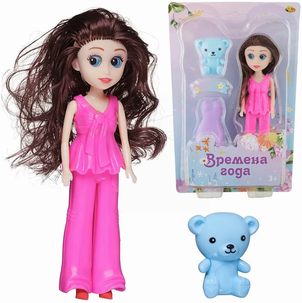 ABtoys Набор игровой «Кукла в розовом брючном костюме с медвежонком и дополнительным платьем»-20% +63
