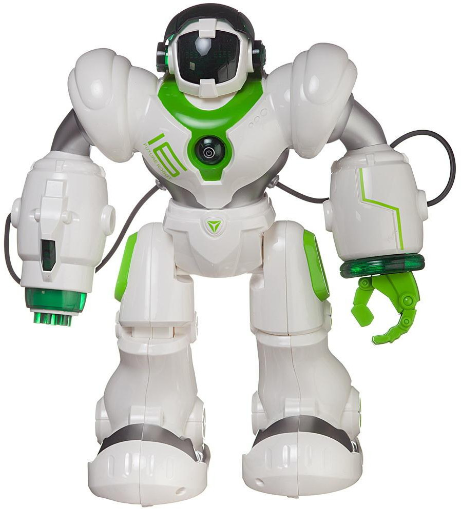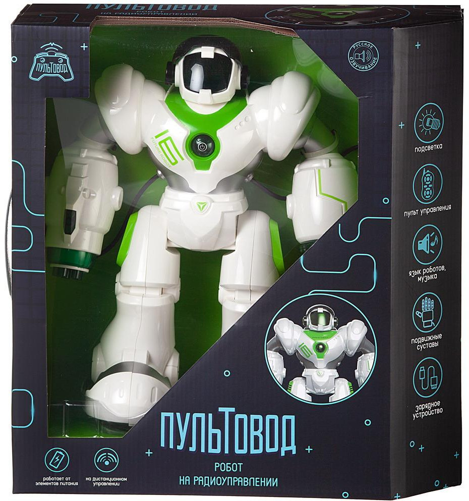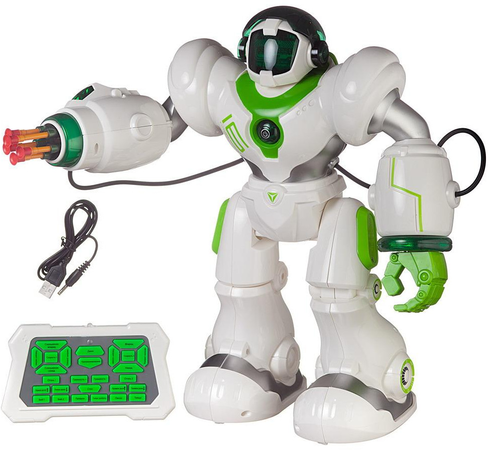 Junfa Toys Робот на радиоуправлении со световыми и звуковыми эффектамиВ данный момент этот товар отсутствует в продаже. Возможно, у нас найдется аналогичный или похожий товар здесь. Серия: Пультовод Игрушка-робот на радиоуправлении «Пультовод» со световыми и звуковыми эффектами предназначена для сюжетно-ролевых игр, способствует развитию воображения, познавательного мышления и моторики. Радиоуправляемый робот «Пультовод» — замечательный подарок для любого ребёнка. Теперь ему никогда не будет скучно, ведь он получит не просто игрушку, но и друга. Управление этим многофункциональным роботом осуществляется при помощи пульта дистанционного управления. Он полностью русифицирован, но знает и язык роботов. У робота подвижные руки и ноги, динамичная световая подсветка на голове. Он может двигаться во всех направлениях (вперед, назад, вправо и влево), ходить или скользить. В правую руку робота встроена ракетная установка, которая выпускает стрелы по команде. Робот умеет танцевать, исполняет песни. Его движения можно запрограммировать, есть режим «Патрулирование». |