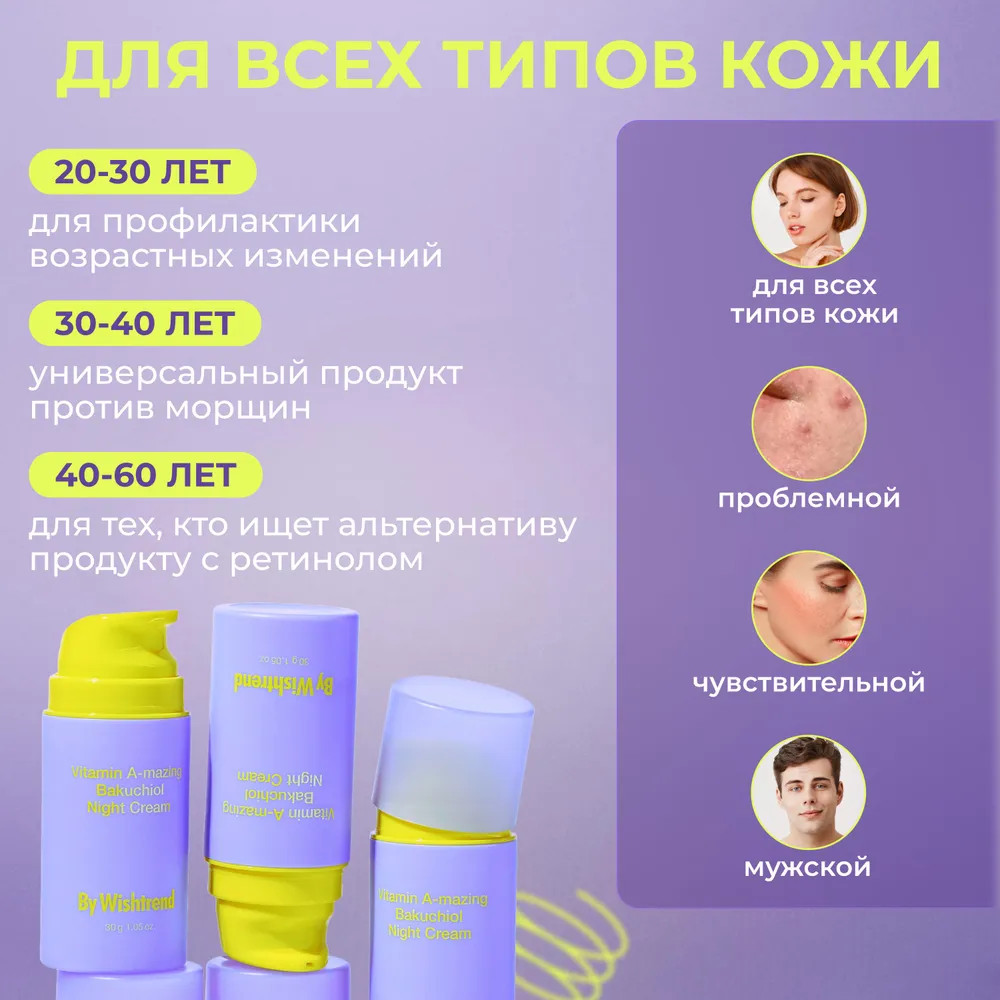 By Wishtrend Ночной крем для лица с бакучиолом и ретиналем «Vitamin A-mazing Bakuchiol Night Cream»