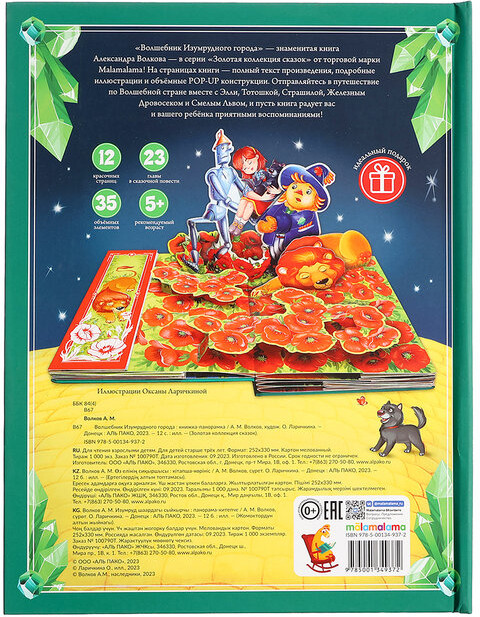 💳 Оплатить за товар можно при получении 🇰🇿 Есть бесплатная доставка по Казахстану 🎁 Копите бонусы с каждой покупки Серия: Золотая коллекция сказок Знаменитая сказка Александра Волкова о приключениях доброй девочки Элли и её друзей — Страшилы, Железного Дровосека, Трусливого Льва и Тотошки. Отправляйтесь в путешествие по Волшебной стране на страницах новой подарочной книги из серии «Золотая коллекция сказок» от торговой марки Malamalama! Полный текст произведения и огромные POP-UP конструкции на каждом развороте позволят окунуться в атмосферу волшебсва. Книга, которая станет настоящим сокровищем любой книжной коллекции! |