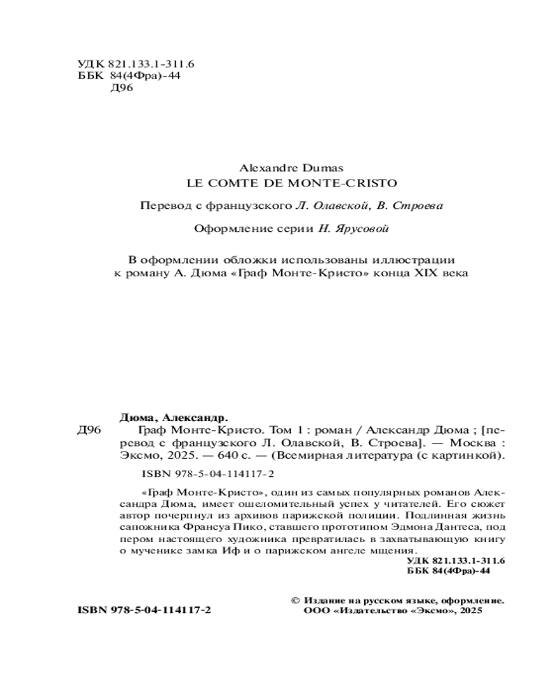 Граф Монте-Кристо. Том 1В данный момент этот товар отсутствует в продаже. Возможно, у нас найдется аналогичный или похожий товар здесь. Серия: Всемирная литература (новое оформление) «Граф Монте-Кристо», один из самых популярных романов Александра Дюма, имеет ошеломительный успех у читателей. Его сюжет автор почерпнул из архивов парижской полиции. Подлинная жизнь сапожника Франсуа Пико, ставшего прототипом Эдмона Дантеса, под пером настоящего художника превратилась в захватывающую книгу о мученике замка Иф и о парижском ангеле мщения. |