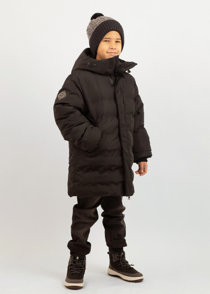 Зимний пуховик для подростка из курточной ткани с пропиткой milki и термострочкой с флисом на подкладке. Очень теплый: рекомендуемый температурный режим — до −30-35С! Двухуровневая система утепления — 200 г рулонного экофайбера и 150 г синтепуха. Удлиненный пуховик сшит из практичной ткани. Термострочки надежно предохраняют от перемещения утеплителя. Подкладка из флиса по спинке и грудке. В рукавах и по низу пальто гладкий полиэстер. Высокий воротник-стойка полностью закрывает шею. Манжеты рукавов из трикотажа, удлиненные с отверстием под большой палец. Съемный капюшон на кнопках. Застегивается на тракторную молнию, предусмотрена внутренняя ветрозащитная планка. Три кармана: два прорезных на молнии спереди и один внутренний на молнии из силикона.