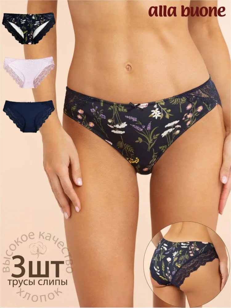 Alla buone Трусы-слип женские с кружевом комплект «Giardino»