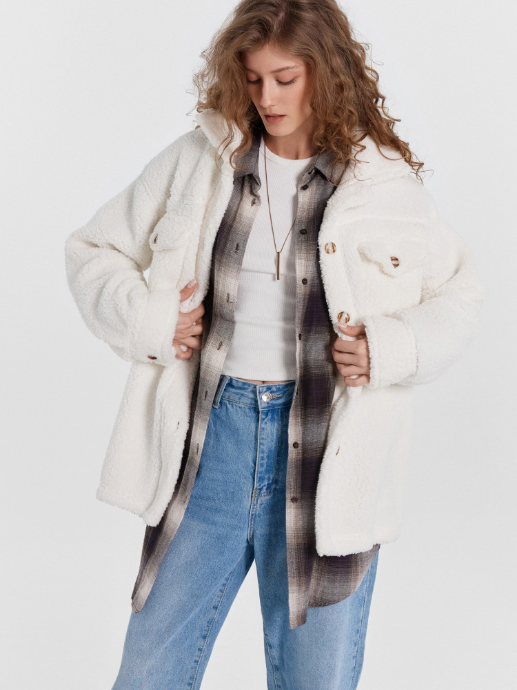 Жакет очень понравился, тонкий, мягкий, но в то же время объёмных и теплый, очень комфортно в нем. Можно носить как рубашку или легкую курточку с футболкой или лонгсливом, но тогда не хватает как бы боковых кармашков.