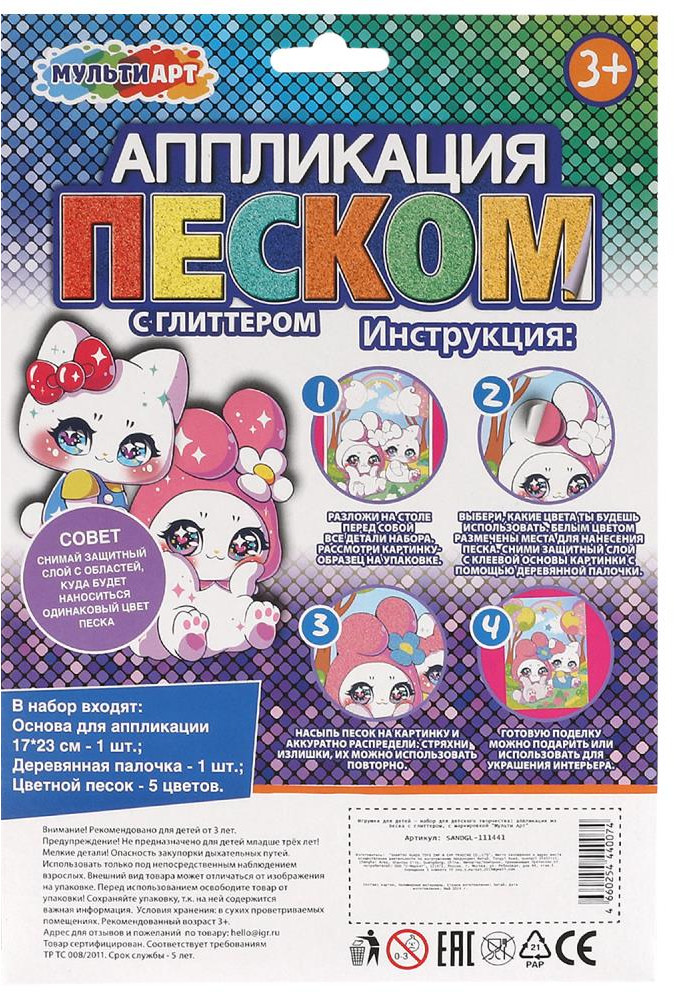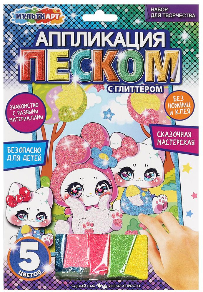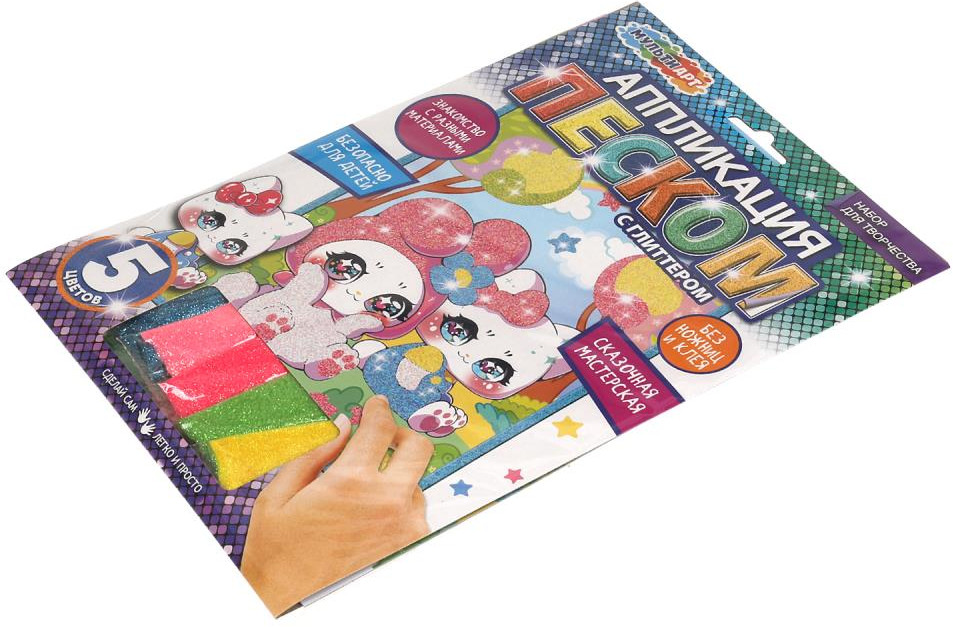 💳 Оплатить за товар можно при получении 🇰🇿 Есть бесплатная доставка по Казахстану от 1 дня 🎁 Копите бонусы с каждой покупки Серия: Сказочная мастерская Набор для творчества — аппликация из песка с глиттером из серии «Сказочная мастерская» ТМ «Мульти Арт» — отличный подарок для ребёнка, который будет способствовать развитию его творческих способностей. С помощью красочной основы и разноцветного блестящего песка маленький художник сможет самостоятельно создать сверкающую аппликацию с изображением милых зверят. Готовую поделку можно подарить близким или использовать для украшения интерьера. Занятия с наборами для творчества ТМ «Мульти Арт» развивают: внимание и усидчивость, творческое мышление, сенсорное и цветовое восприятие, моторику рук и воображение. |
