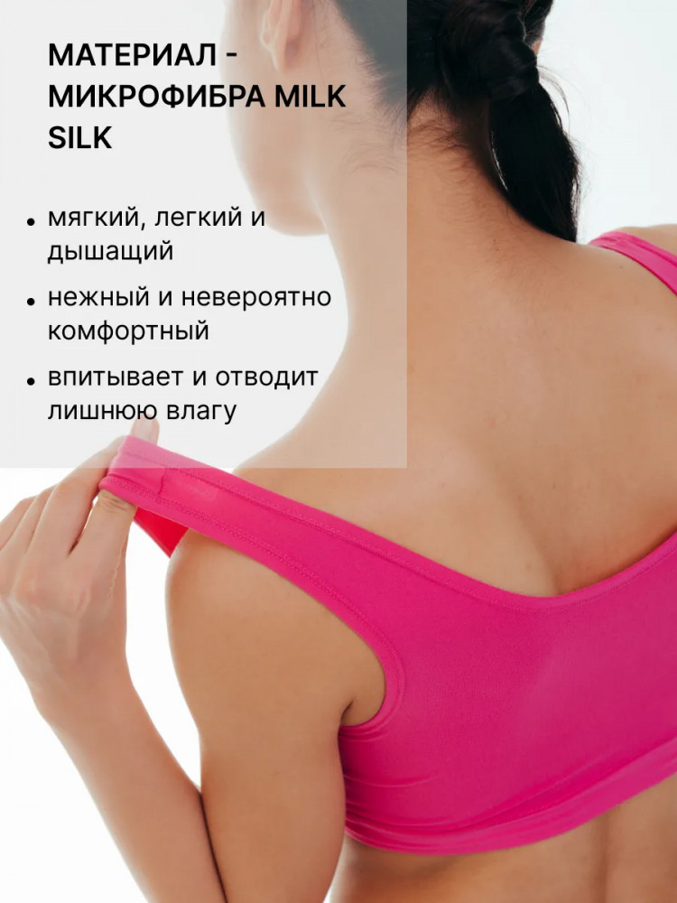 Комплект нижнего белья из коллекции Pink Leo состоит из топа и стрингов, выполненных из мягкой, бархатистой и очень приятной к телу ткани — микрофибры milk-silk. Это мягкая, дышащая ткань с роскошным ощущением на теле, которая обладает влагоотводящими свойствами. Топ имеет удобную форму, обеспечивающую идеальную посадку, которая адаптируется к вашему телу и подчеркивает его естественные линии. Стринги созданы для того, чтобы оставаться незаметными под одеждой, обеспечивая комфорт и легкость на протяжении всего дня. Комплект представлен в современных расцветках, подчеркивающих стиль и индивидуальность, что делает его идеальным выбором для повседневного ношения, даря ощущение уюта и уверенности в себе.