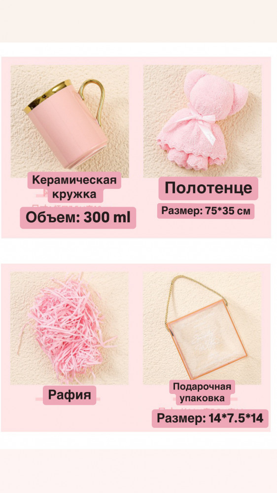 Набор подарочныйВ данный момент этот товар отсутствует в продаже. Возможно, у нас найдется аналогичный или похожий товар здесь. Подарочный набор, включающий керамическую кружку, полотенце и прозрачную подарочную упаковку, — это идеальный вариант для подарка, сочетающий в себе практичность и эстетичный вид. Этот набор универсален и подойдет как для коллег, так и для друзей или родственников. |