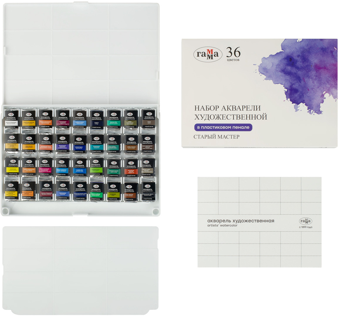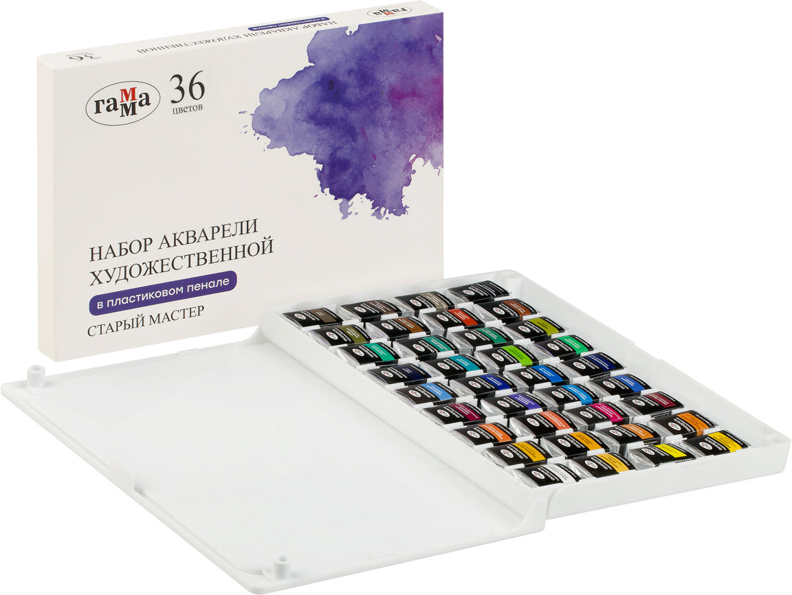 Профессиональная художественная акварель «ГАММА» серии «Старый мастер» разработана в собственной исследовательской лаборатории завода. Профессиональные краски состоят из тонкодисперсных пигментов, связующего, в состав которого входит раствор растительного клея — гуммиарабика высшей степени очистки, что обеспечивает насыщенность цветов, чистоту и прозрачность красочного слоя. Акварель «Старый мастер» изготавливается без использования дополнительных наполнителей, а многослойная заливка увеличивает долю пигмента. Краски обладают высоким уровнем светостойкости. С помощью акварельных красок «ГАММА» серии «Старый мастер» можно писать в различных техниках, например, — лессировка, по — мокрому, заливка, сухая кисть.