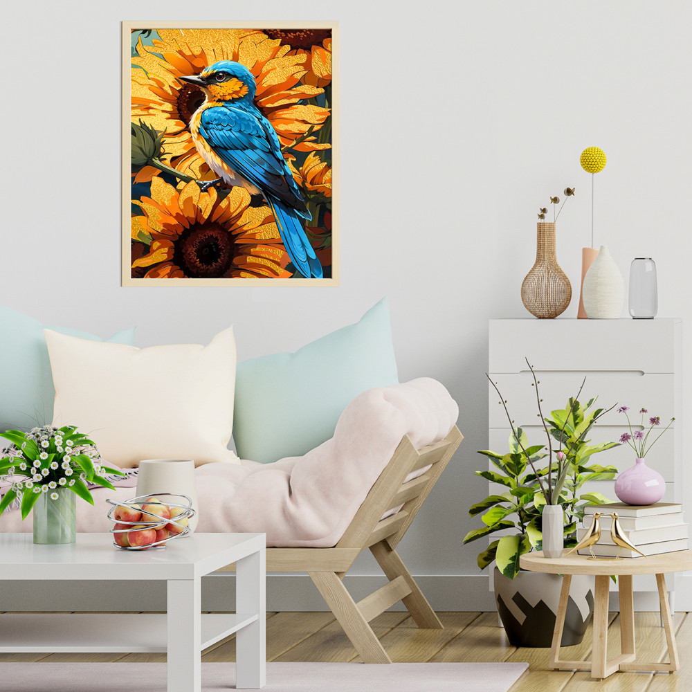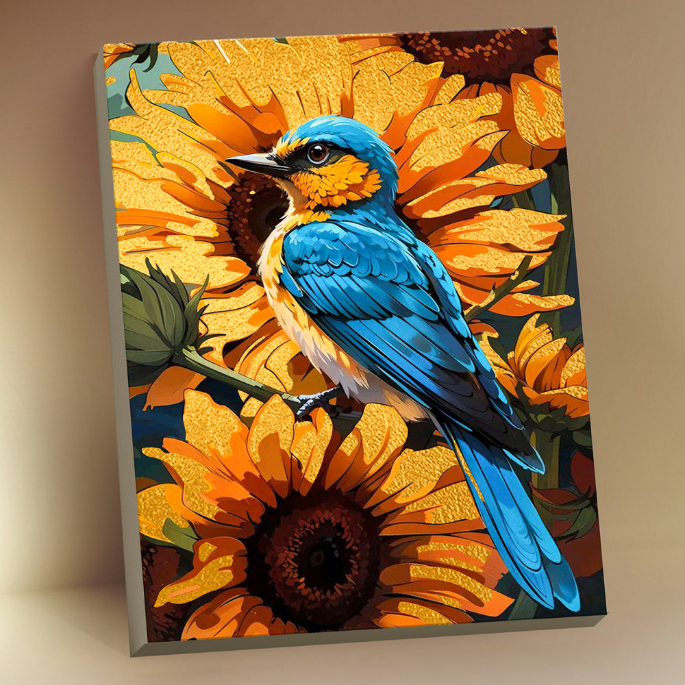 Флюид Картина по номерам с поталью «Синяя птица в подсолнухах»-20% +114