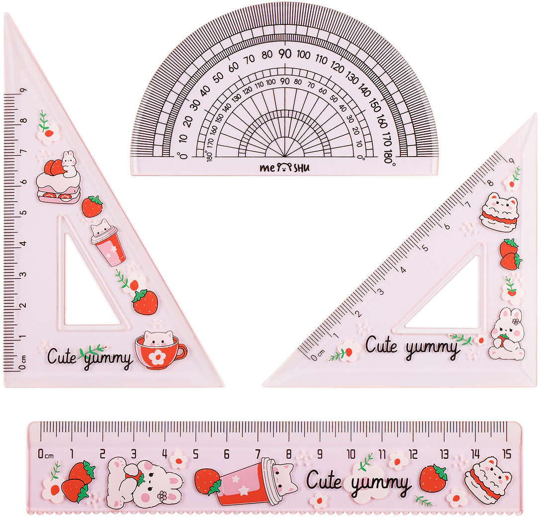 💳 Оплатить за товар можно при получении 🇰🇿 Есть бесплатная доставка по Казахстану от 1 дня 🎁 Копите бонусы с каждой покупки Набор чертежный малый MESHU Cute Kittens включает в себя: линейку длиной 15 см, два треугольника 30°/60°, 45°/45° и транспортир. Прозрачные линейки из пластика выполнены в приятном розовом нежном цвете. А удобный ПВХ-чехол в фирменных милых дизайнах MESHU не только обеспечит удобство хранения и использования, но и подарит отличное настроение. |