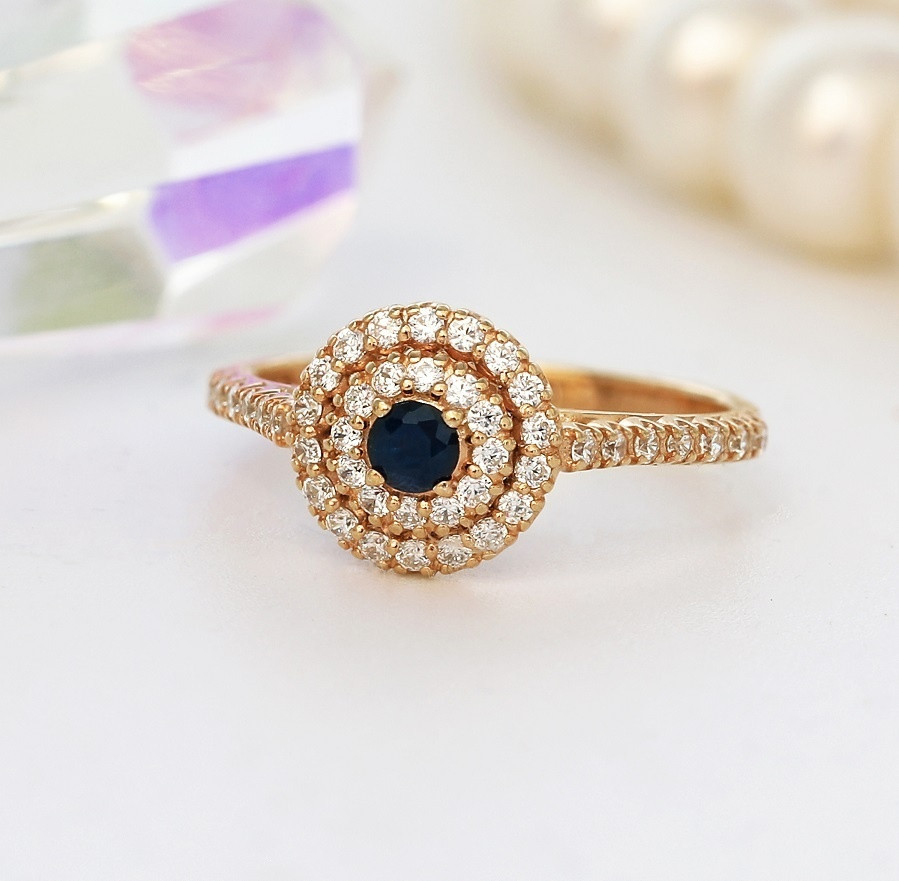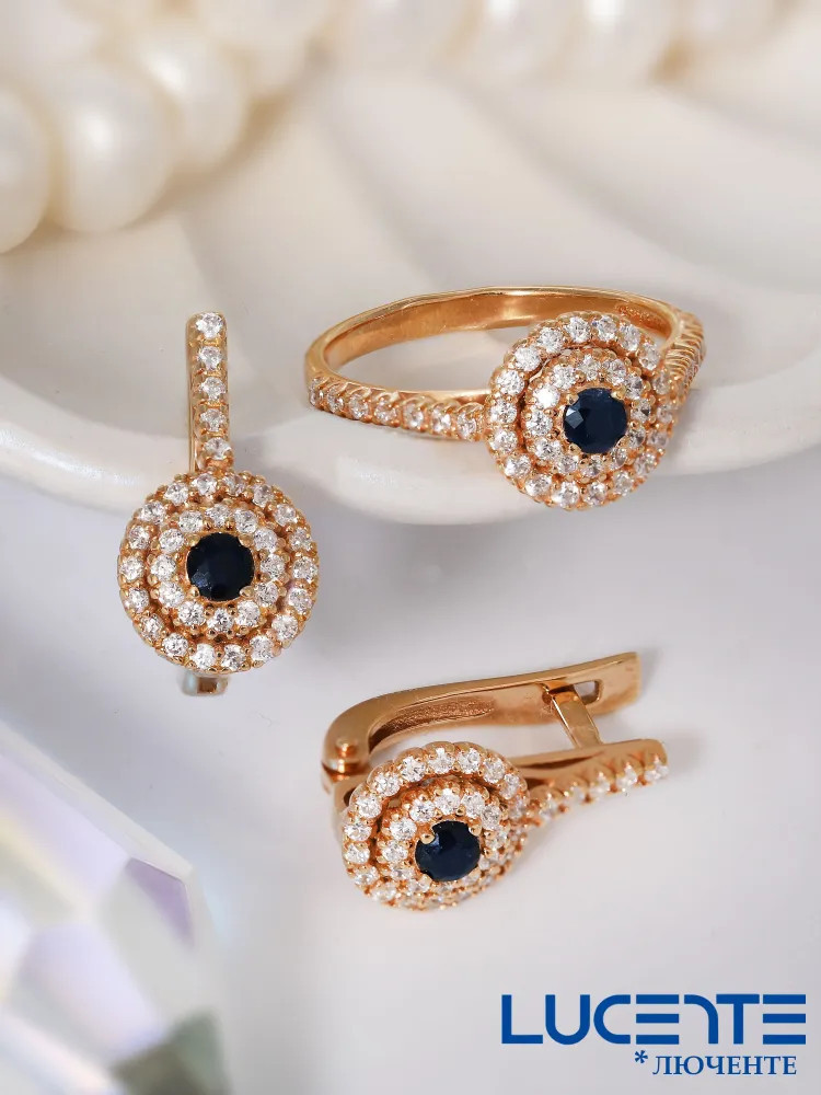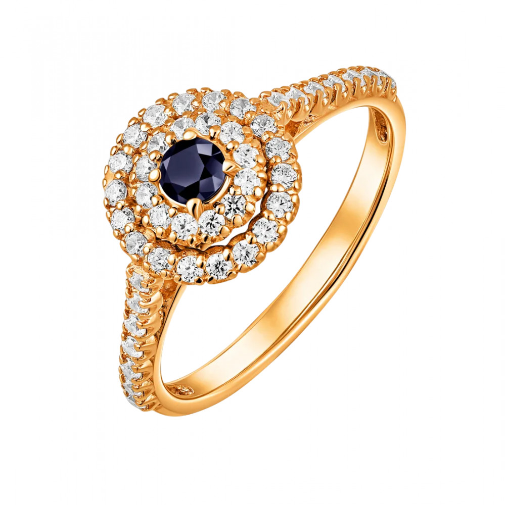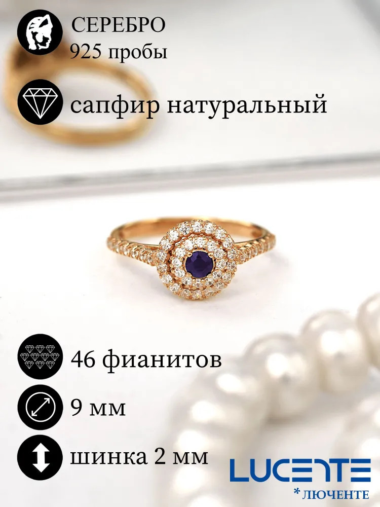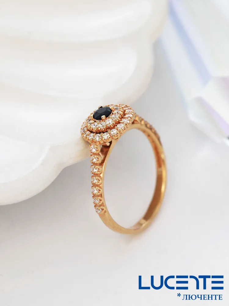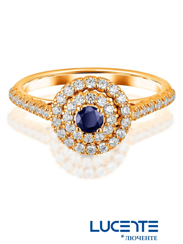 Lucente Silver Кольцо из золочёного серебра с сапфиром и фианитами
