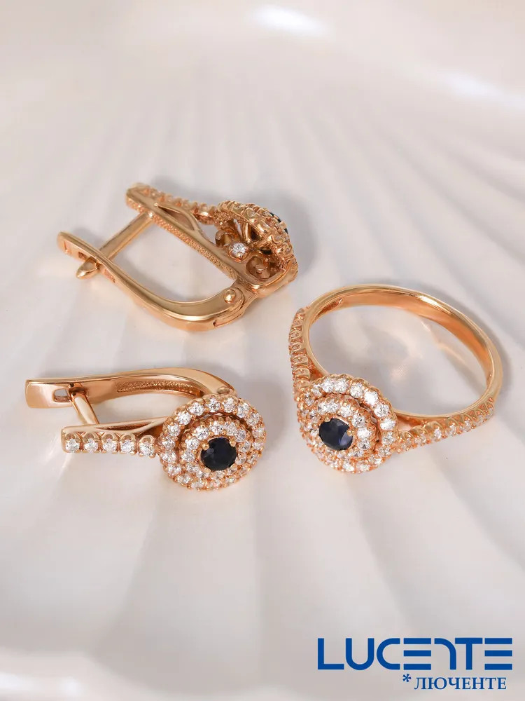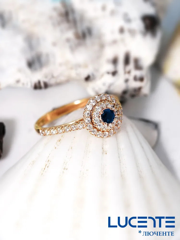 Lucente Silver Кольцо из золочёного серебра с сапфиром и фианитами