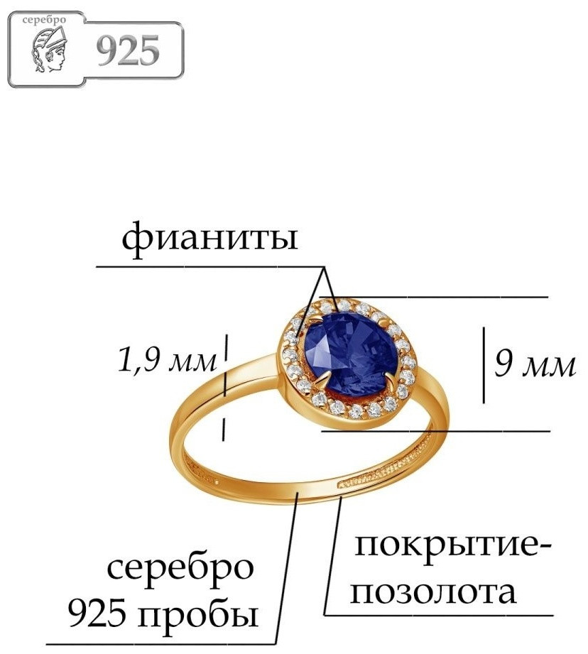 Lucente Silver Кольцо из золочёного серебра с фианитами