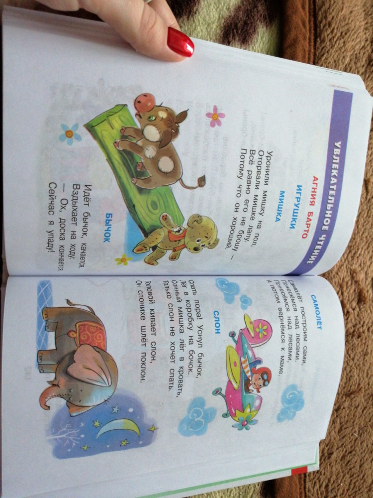 Доченька обожает эту книгу. Хотя дома не мало других детских книг. Книги красочные и интересные, большое содержание. Сказки, стихи, песни, поучительные рассказики, скроговорки и многое другое.