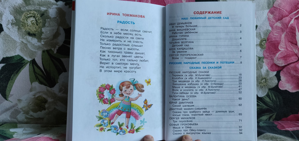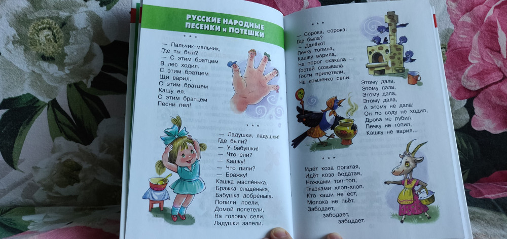 Очень понравилось, хорошее содержание, и потешки, и сказки, и считалочки, и стихи, и песенки. Все в 1 книге. Единственное, обратите внимание на размер книги! (тетрадный размер)