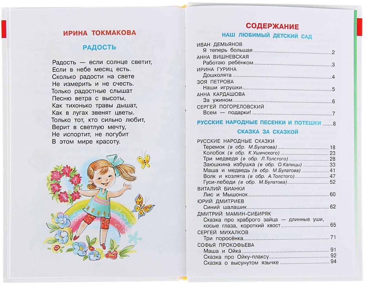 Отличная книга, красивые иллюстрации, все собрано в одной книге, стишки и сказки, песенки, рассказы. Мы взяли сразу для младшей, средней и старшей группы хрестоматию. Рекомендую.