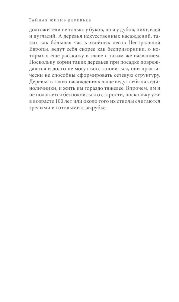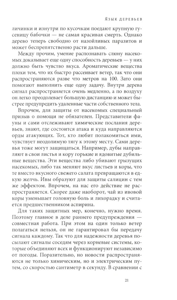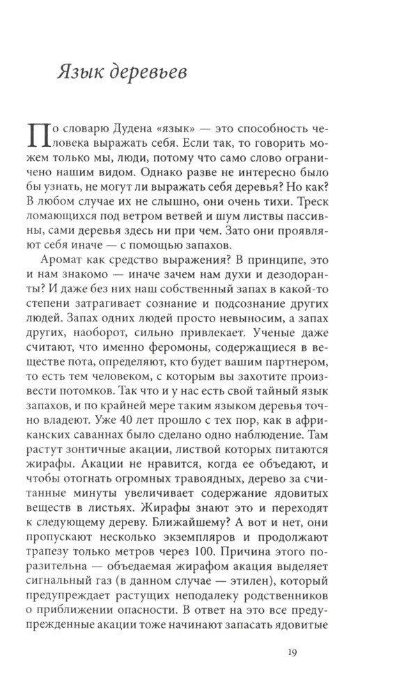 Тайная жизнь деревьев. Что они чувствуют, как они общаются — открытие сокровенного мираВ данный момент этот товар отсутствует в продаже. Возможно, у нас найдется аналогичный или похожий товар здесь. Серия: Исследования культуры Лес — привычное и обыденное чудо. Поставщик древесины и кислорода, местообитание множества живых организмов, родина сказок и легенд, он кажется таким знакомым и понятным. Однако много ли нам известно о самих деревьях, об их чувствах и взаимоотношениях? Как они общаются между собой и можно ли освоить их язык? Чем отличаются городские деревья от своих лесных родственников? Существует ли связь между деревьями разных поколений? На все эти вопросы просто и доступно отвечает лесник из Западной Германии Петер Вольлебен — специалист с многолетним стажем и автор множества популярных книг о природе. |