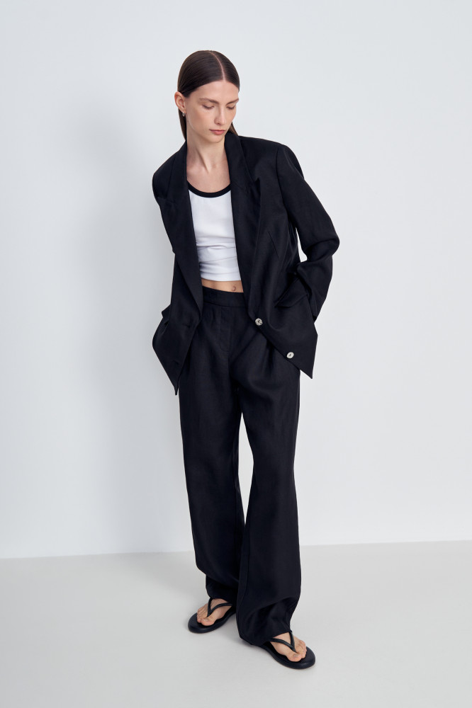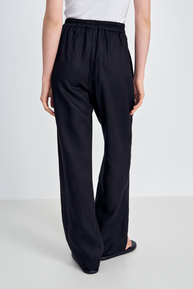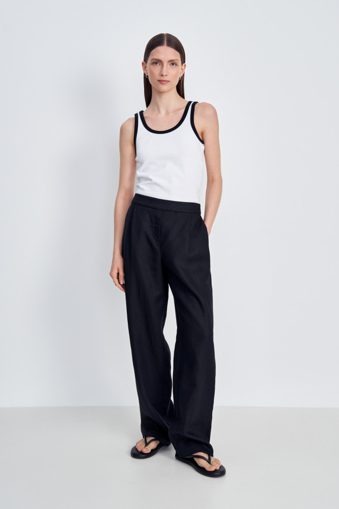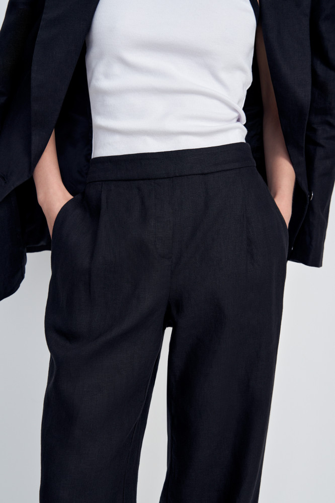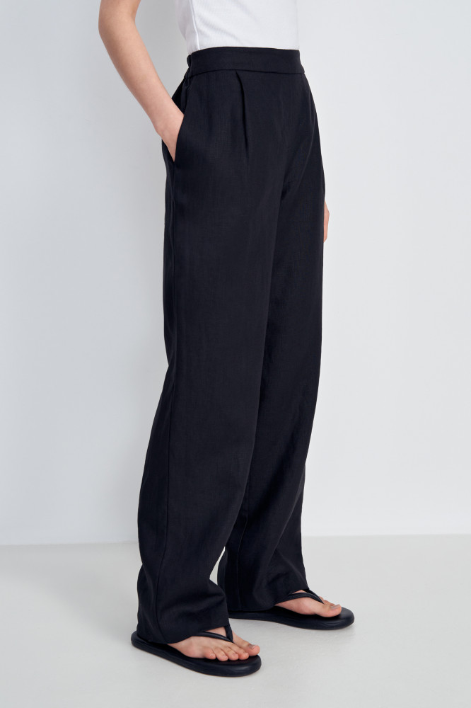 Легкие брюки бойфит из льна. Модель выполнена из 100% натурального материала, плотного, но при этом дышащего. Пояс оснащён мягкой резинкой для более комфортной посадки. Защипы на брюках делают фигуру визуально стройнее, скрывают объем и зрительно удлиняют ноги. Подойдут как для прогулок летним вечером, так и для поездки в офис.