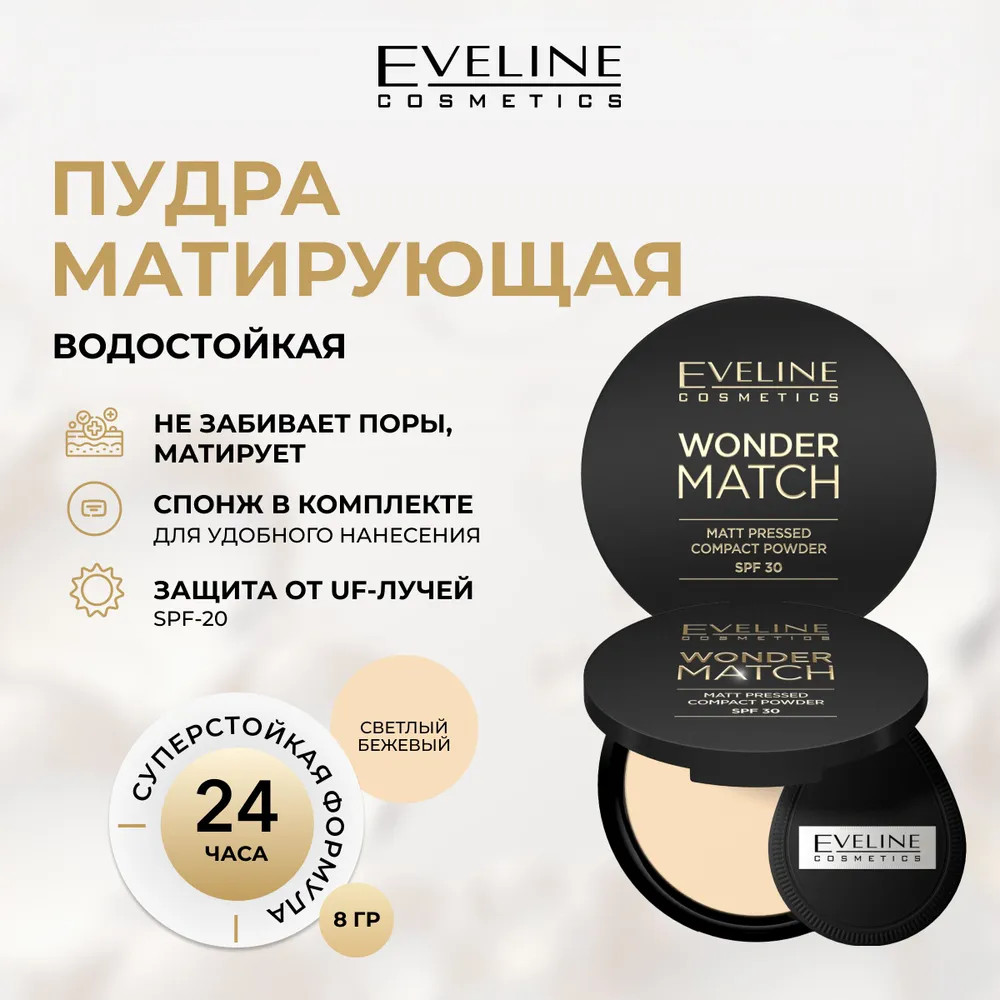 Eveline Cosmetics Пудра для лица матирующая SPF30, оттенок 01 Light beige