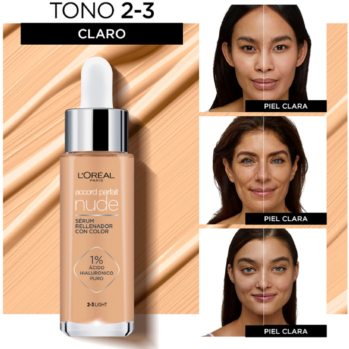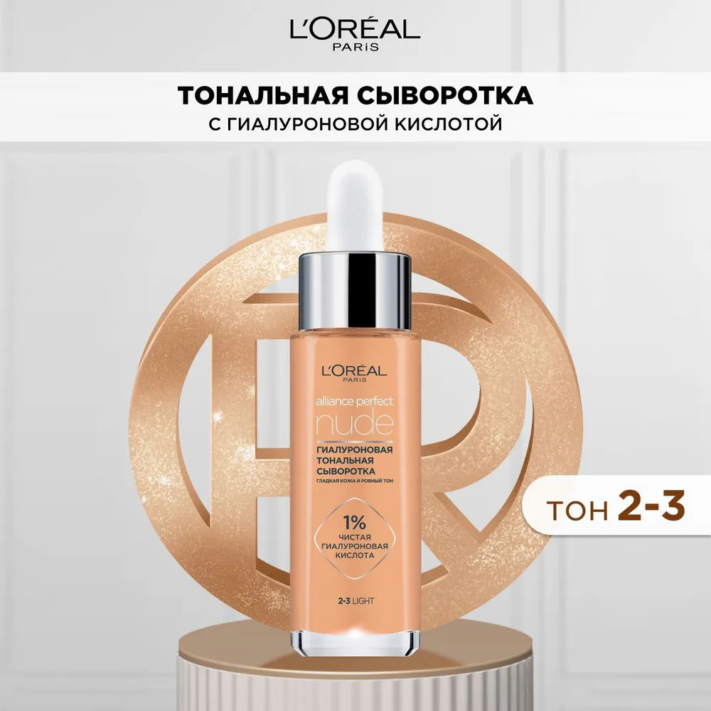 L'Oreal Paris Тональная сыворотка гиалуроновая «Nude», оттенок 2-3 light