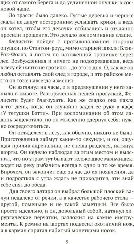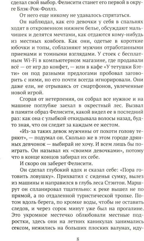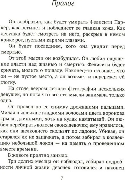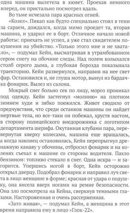 В книге «Смертельное свидание» шериф Дженна Алтон начинает расследование и обнаруживает тревожную связь: несколько лет назад убитый, прикрываясь работой клоуна, был замешан в похищениях маленьких девочек. Вскоре в округе находят труп еще одного причастного к тем мерзким преступлениям. Кажется, в городе объявился линчеватель, и он не остановится, пока не отомстит всем виновным. |