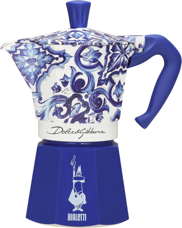 В оригинальной палитре чисто-белого и ярко-голубого оттенков гейзерная кофеварка большого формата Moka Induction Bialetti Dolce&Gabbana отражает характерную для Дома тематику Blu Mediterraneo, позволяя окунуться в удивительную атмосферу южной Италии. Это дань уважения Италии, ценностям Fatto a Mano (ручной работы) и высокого мастерства, неизменно составляющим основу эстетики Dolce&Gabbana.