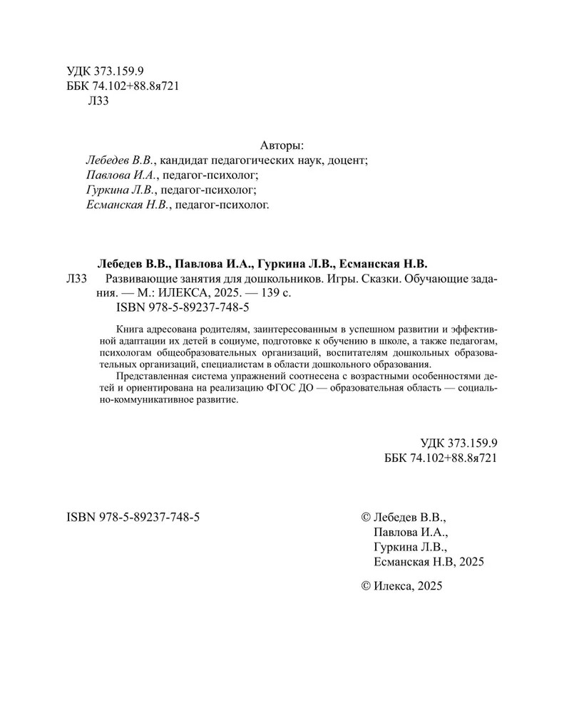💳 Оплатить за товар можно при получении 🇰🇿 Есть бесплатная доставка по Казахстану 🎁 Копите бонусы с каждой покупки Книга адресована родителям, заинтересованным в успешном развитии и эффективной адаптации их детей в социуме, подготовке к обучению в школе, а также педагогам, психологам общеобразовательных организаций, воспитателям дошкольных образовательных организаций, специалистам в области дошкольного образования. Представленная система упражнений соотнесена с возрастными особенностями детей и ориентирована на реализацию ФГОС ДО — образовательная область — социально-коммуникативное развитие. |