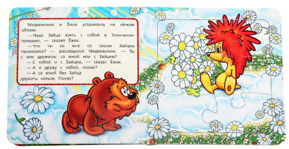 💳 Оплатить за товар можно при получении 🇰🇿 Есть бесплатная доставка по Казахстану от 1 дня 🎁 Копите бонусы с каждой покупки Данная книга выполняет сразу 2 функции: это и книга для чтения, и игра в пазлы. На каждом развороте малыша ждёт интересное повествование, а также яркий пазл из 6 деталей с изображением сказочных персонажей. Книжка изготовлена из плотного картона, поэтому мамы могут не опасаться, что ребёнок порвёт странички. Благодаря удобному формату книгу можно взять с собой в дорогу.Чтение книги с пазлами ТМ «УМка» и игра с ней развивают:- образное мышление- мелкую моторику- логическое мышление- фантазию- внимание. |
