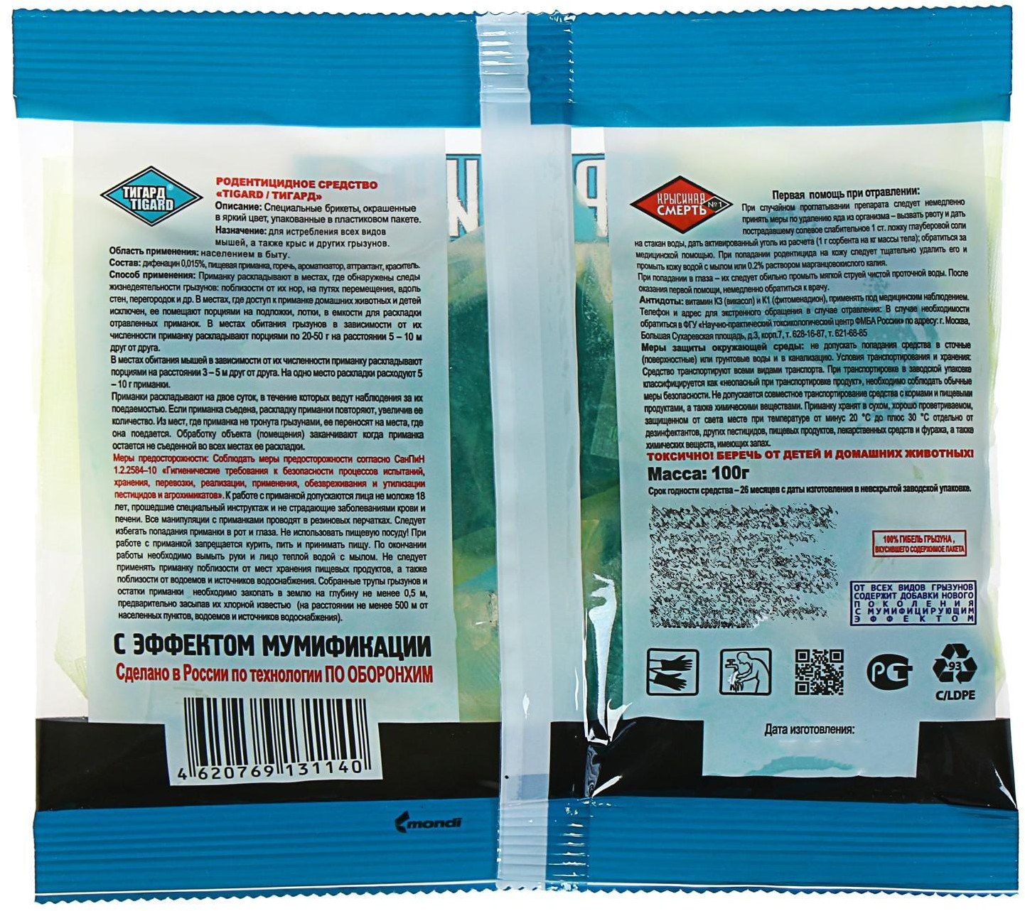 💳 Оплатить за товар можно при получении 🇰🇿 Есть бесплатная доставка по Казахстану от 1 дня 🎁 Копите бонусы с каждой покупки Крысиная смерть № 1 — тестообразные брикеты, упакованные в фильтр-бумагу. Они испускают привлекательных для грызунов запах. Действие препарата основано на прекращении свертывания крови, что вызывает множественные внутренние кровоизлияния во внутренние органы. После того, как грызун съедает приманку, смерть наступает через 3-4 дня. Родентицидное средство. |