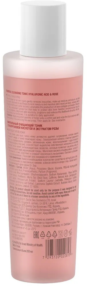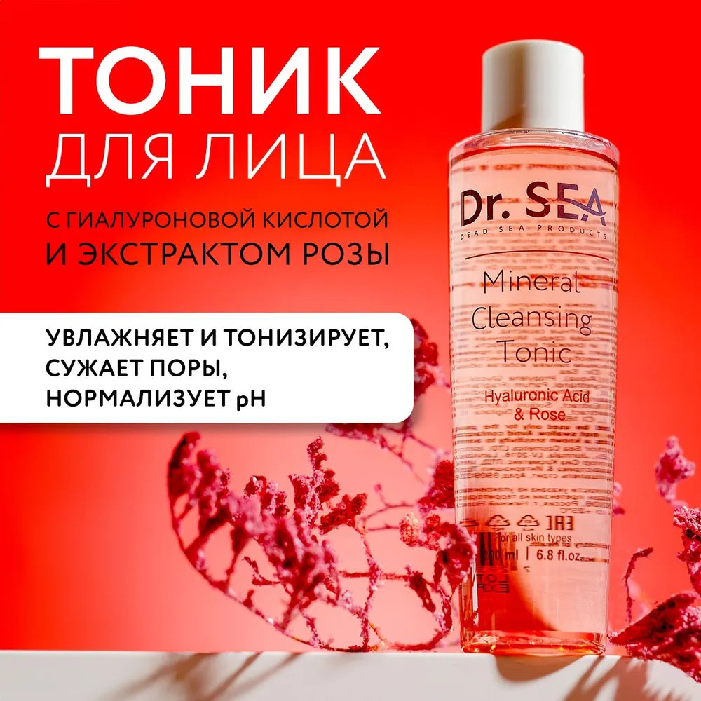 Dr. Sea Тоник для лица с гиалуроновой кислотой и экстрактом розы минеральный «Mineral Cleansing Tonic»